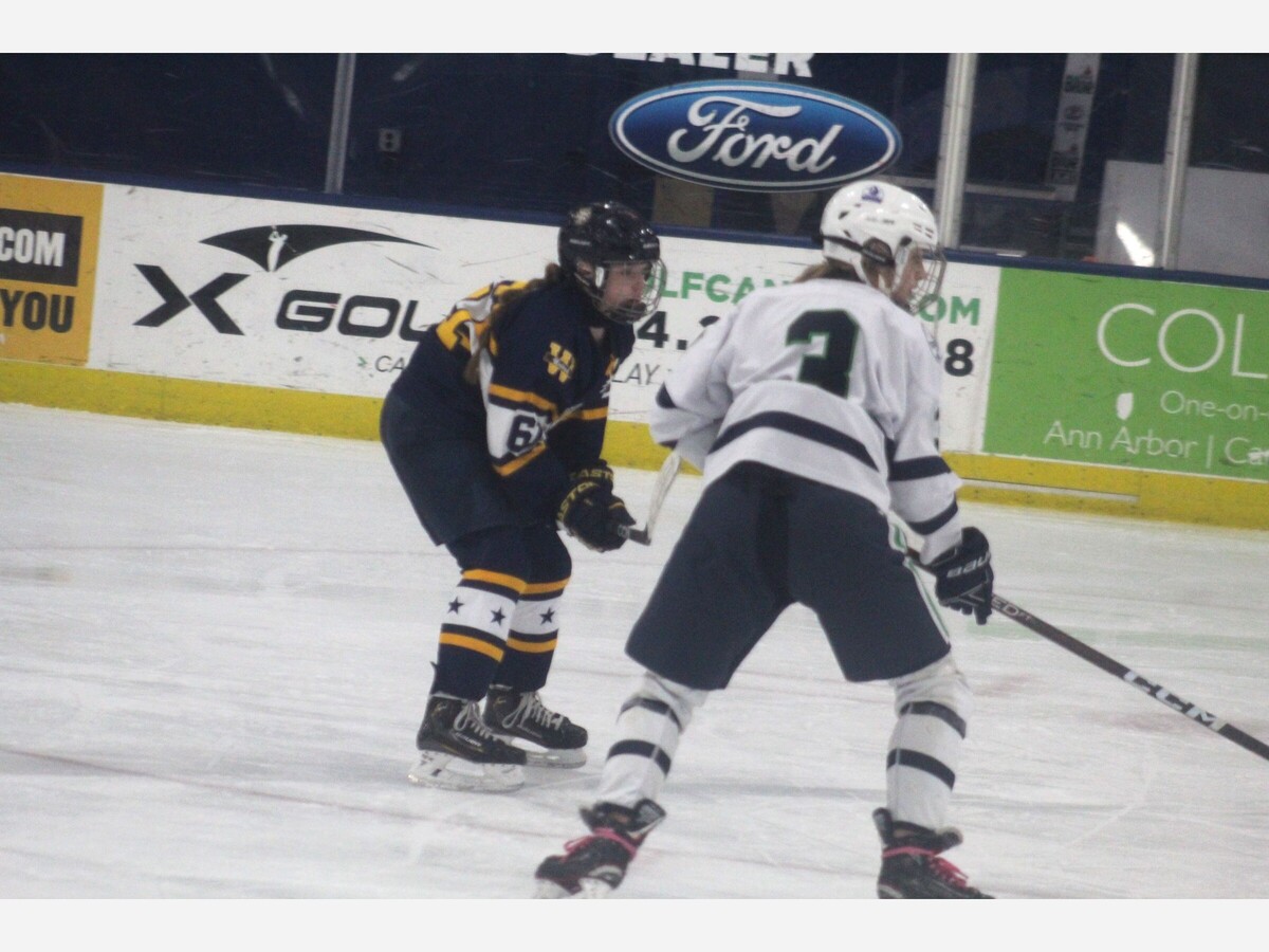 Trista Schreiber-Tracy came up with several big saves in net to keep Cranbrook off the board. Photo by Mike WilliamsonThe Washtenaw penalty kill was spot on as well, killing all four to Cranbrook’s power plays, while United did not have one power play in the game.