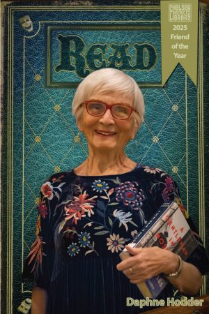 Daphne Hodder has been actively involved with the library since the summer of 1964, getting a library card the day after she moved here. She went to the library every day with her five children, finding a home there. Katie Wagner, a library trustee, asked Daphne, “You are here all the time—why don’t you just work here?” The library subsequently sent her to library school and she started working part-time in late summer/early fall of that year. Since then, Daphne has been a library trustee, advocate for the formation of the district library and building bond, patron, and longtime Used Book Sale volunteer. Perhaps Daphne’s greatest contribution to the Friends is sharing her gift of hospitality for so many years—from hosting afterglow gatherings at her home after library events to consistently commenting on the best qualities of her fellow Friends of CDL. We are thrilled to recognize her numerous contributions.