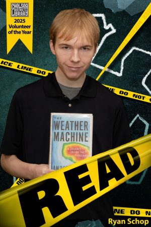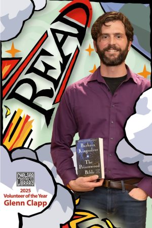 This year, two fantastic volunteers were honored, Ryan Schop and Glenn Clapp. Ryan is a wonderful and hard-working young man who takes great pride in his work and has become a valued member of the team. When he first began volunteering, he helped with shredding and organizing withdrawn CDs; he now assists with finding holds for library patrons—a responsibility he handles with care and precision. Ryan enjoys the quiet atmosphere, organization, and structure that the library provides. His positive attitude, reliability, and dedication have made a lasting impression on the library staff, who look forward to his visits each week. In his free time, Ryan enjoys studying the weather and spending time with his family, and he hopes to one day build on his volunteer experience by working in a library or a similar environment.