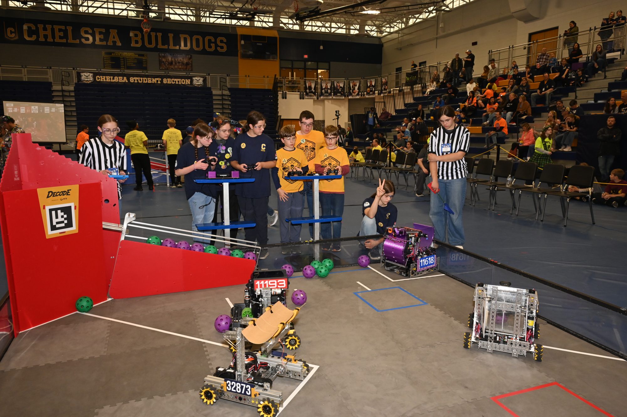 The gym at Chelsea High School transformed into an arena of energy, innovation, and hometown pride on Saturday, November 1, as 35 robotics teams from across the state converged for the first-ever FIRST Tech Challenge qualifier hosted in Chelsea.