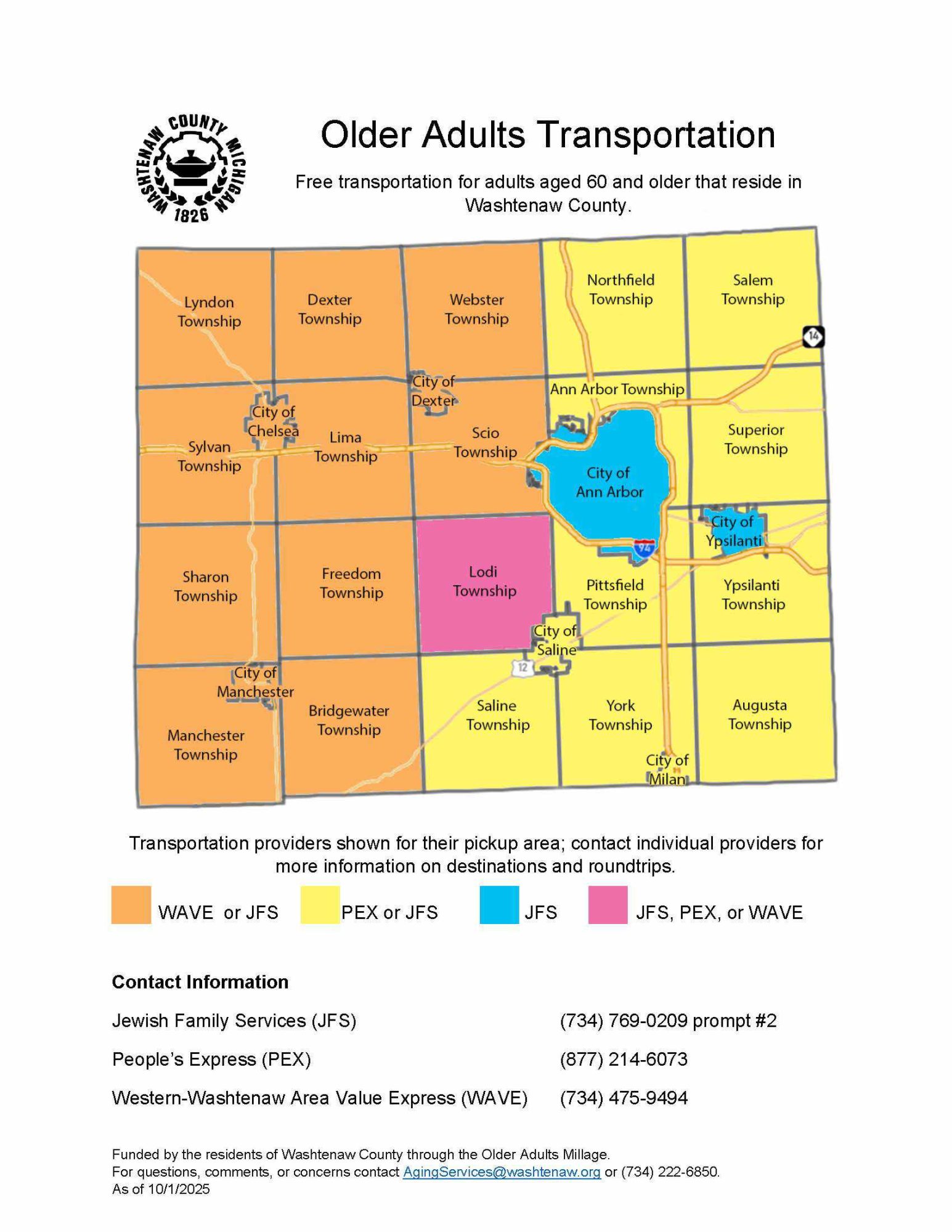 In September, Jewish Family Services (JFS), Western Washtenaw Area Value Express (WAVE) and People’s Express each won $333,333 contracts from the Older Persons Services Millage to provide free transportation to seniors 60-plus who live in Washtenaw County. Jewish Family Services and People’s Express both serve areas that include Milan. WAVE provides coverage in Western Washtenaw County.