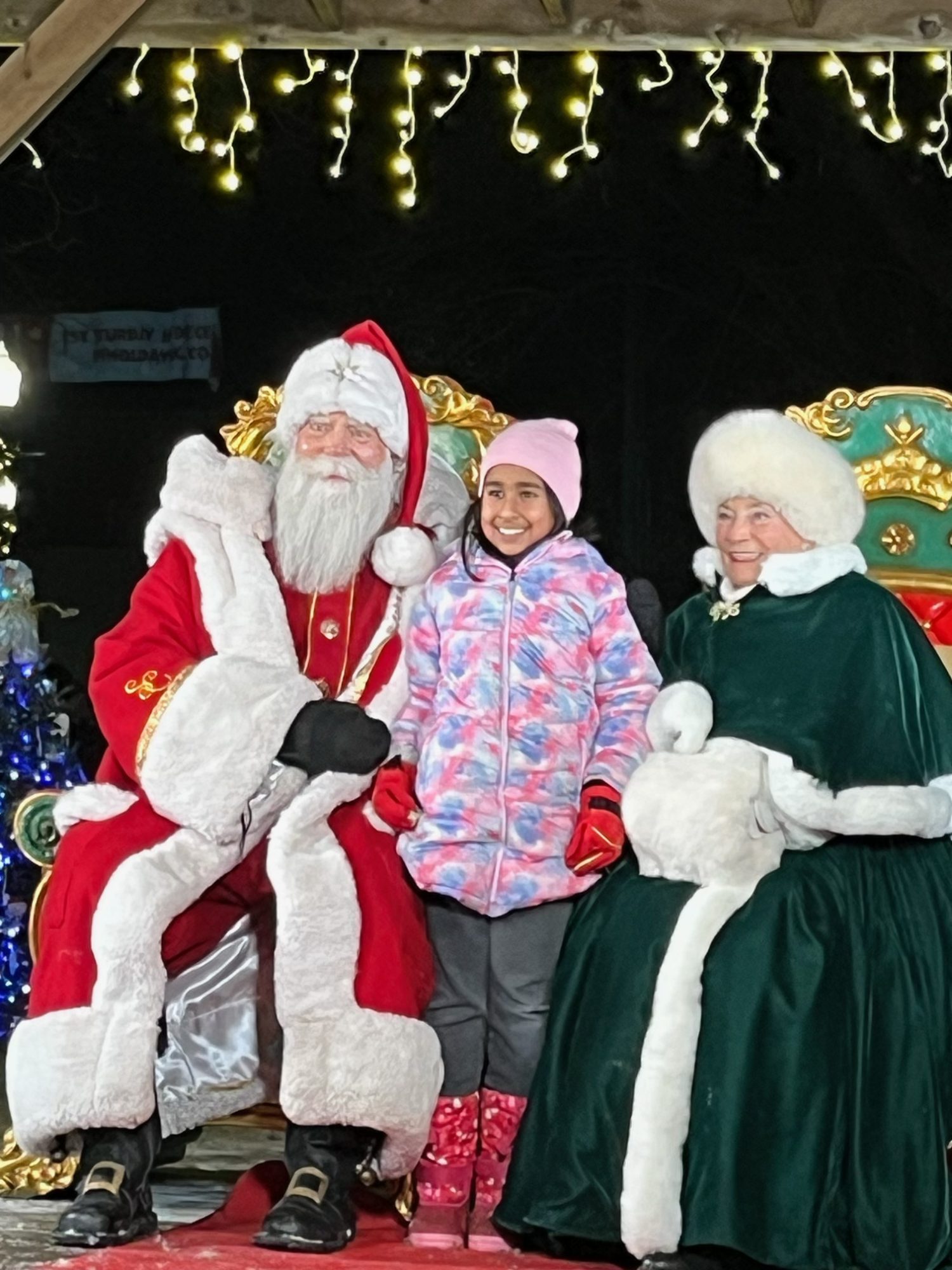 On the evening of Dec. 5, the Dexter Area Chamber of Commerce event “Light Up Dexter” took place with a visit from Santa Claus and Mrs. Claus and the lighting of the Christmas trees in Monument Park. Families and children lined up around the park and gazebo to pose for photos with Santa.
