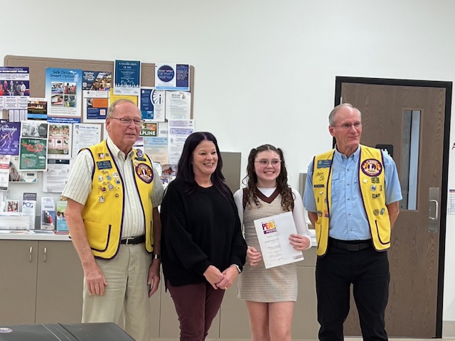 Each winner received a cash award from the Dexter Lions Club. Emmy, the first place winner, attended the Dexter Lions meeting with her parents and art teacher to receive a certificate and her cash award.