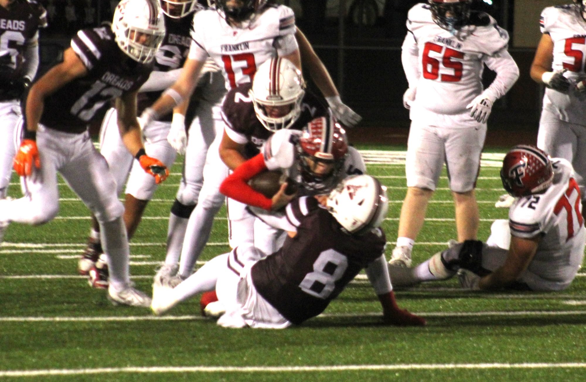 The Dexter defense came up big and Franklin went for it on fourth and eight, but Niemi came up with a huge quarterback sack for an 18-yard loss to give the Dreads the ball back.