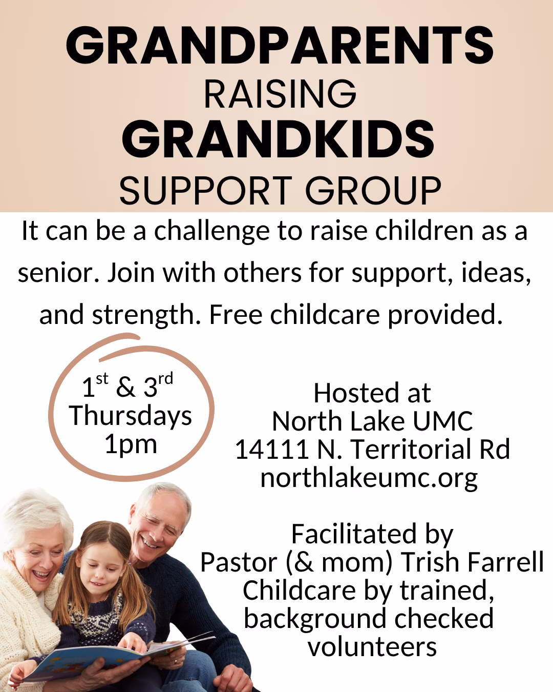 It can be a challenge to raise children as a senior. Join with others for support, ideas, and strength. Free childcare provided.