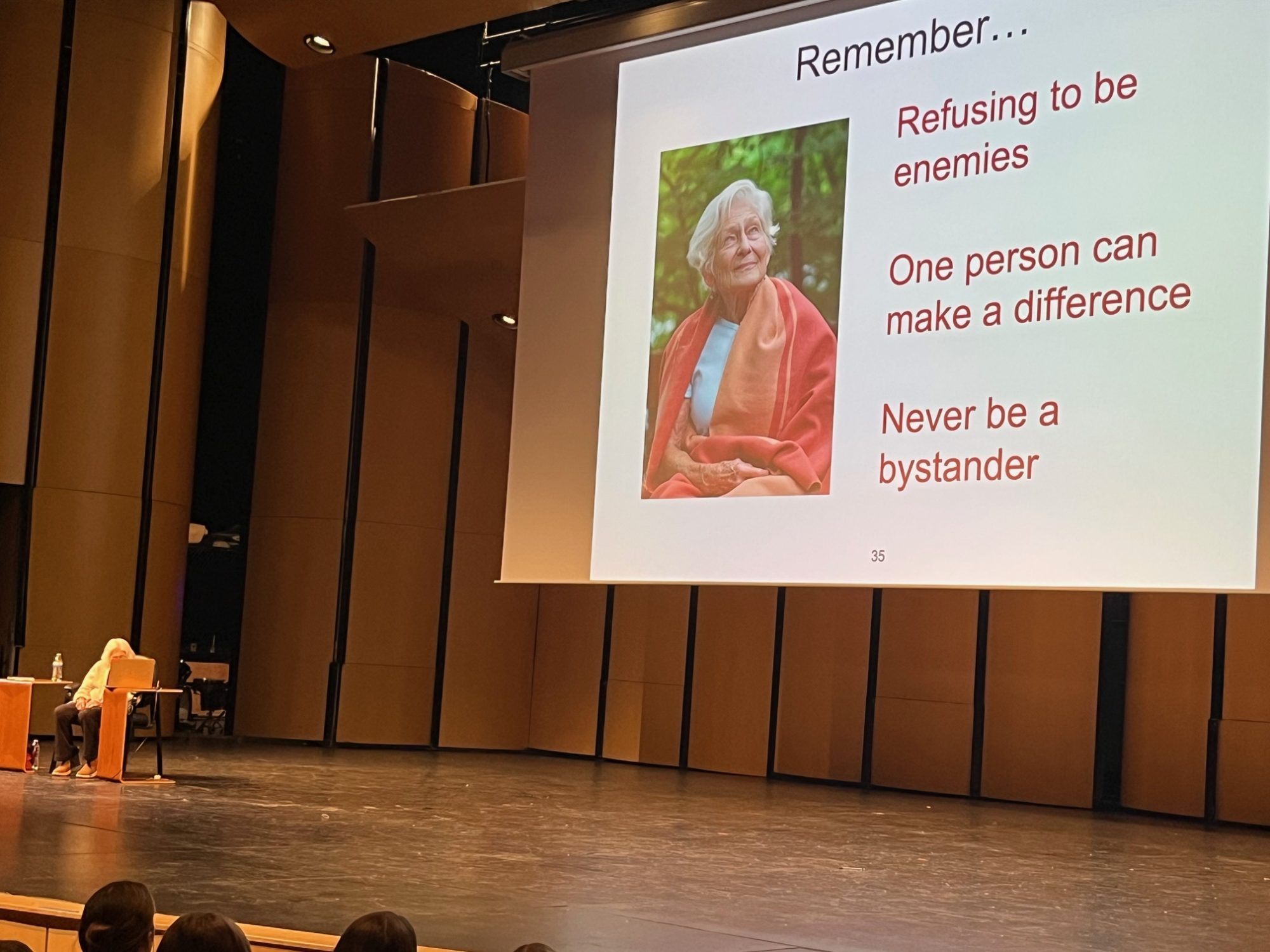 Butter asked the students to remember three points: refusing to be enemies, one person can make a difference and never be a bystander. She said they have the abilities to make meaningful change and remembering these things can make all the difference in the world.