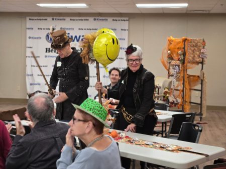 “We come to every Dementia-Friendly event we can get to,” announced Phyllis Robb when she and her husband were awarded a prize for the best costumes. Kiwanis members sat at every table, welcoming guests to the party.