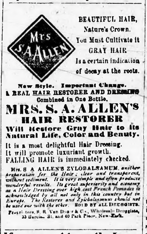 Other ads leaned heavily on urgency and authority. A cough syrup urged, “Mothers, Save Your Children,” warning that delay could be fatal. Hair restorers insisted that gray hair signaled decay at the root, but help was conveniently available in a single bottle. Ingredient lists, side effects, and proof were nowhere to be found. Clever marketing did the work that regulation had not yet assumed.