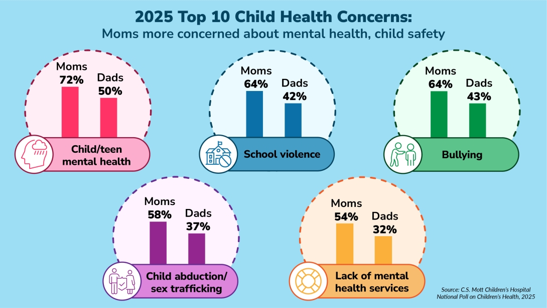 “These concerns from parents reflect a growing awareness that today’s children are facing increasing challenges impacting both their physical and mental health,” said Mott Poll co-director and Mott Children’s pediatrician Susan Woolford, M.D.