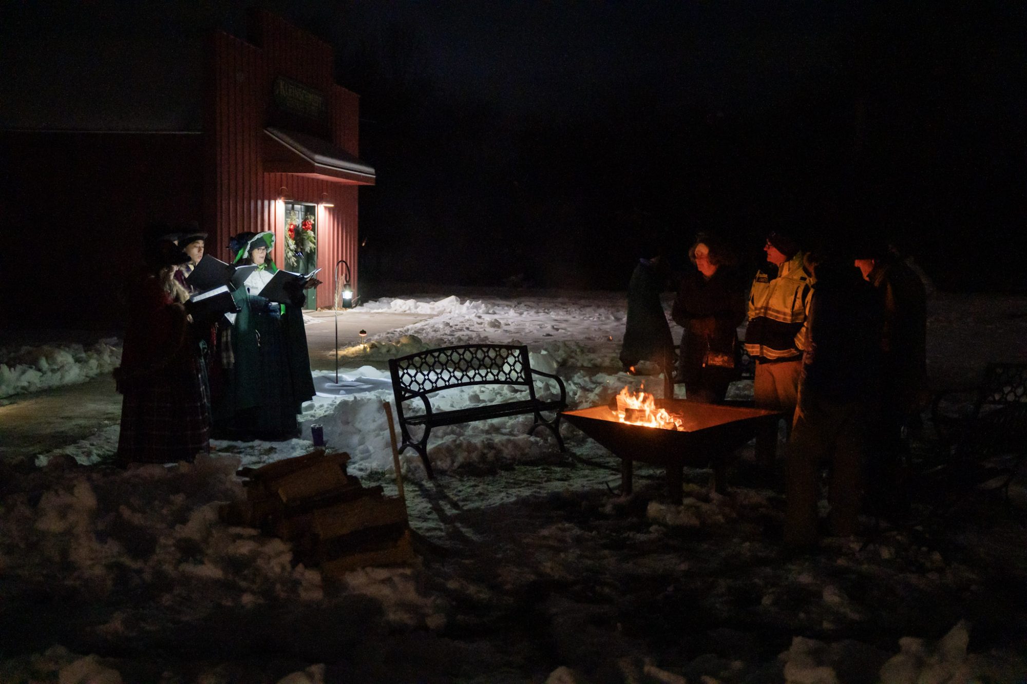 As the “bleak midwinter” evening drew to a close, Historic Webster Village rested quietly beneath lantern and candlelight, with snow reflecting warm gold and rose tones. The setting offered a reminder of the people who once lived and worked there, whose efforts helped shape the community’s identity and sense of place.
