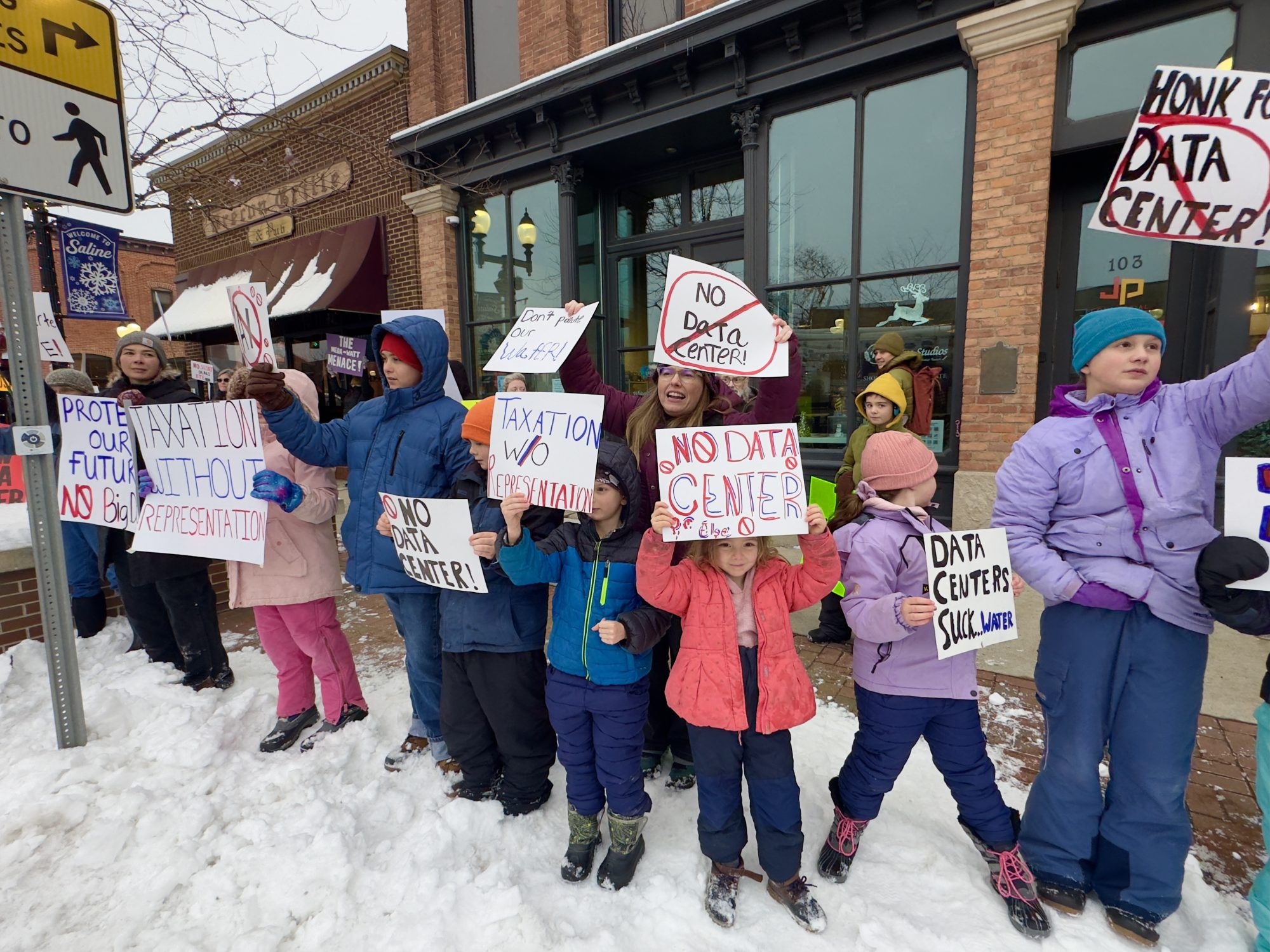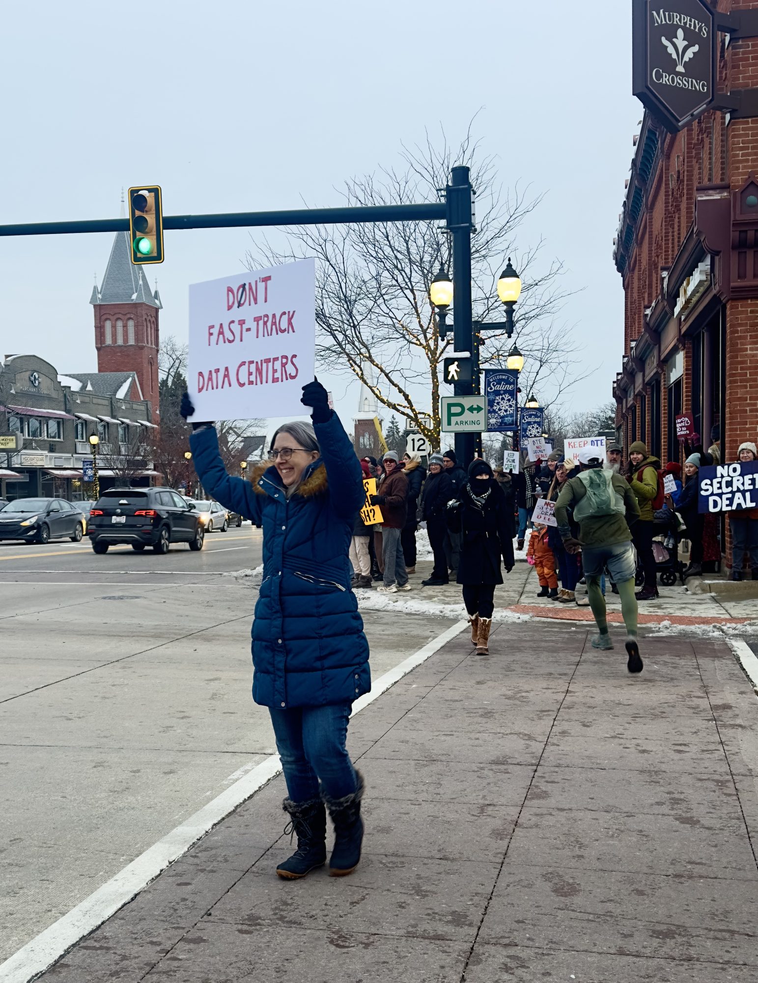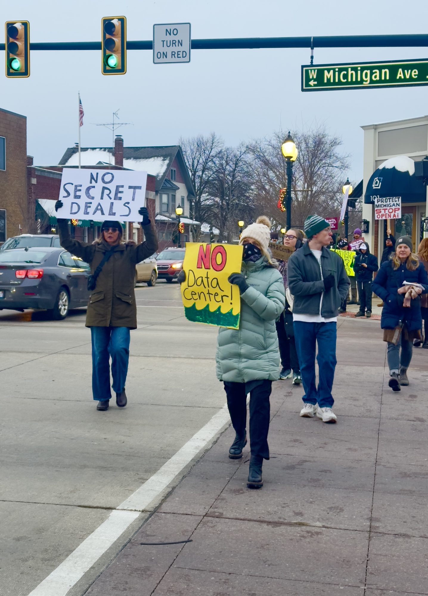 A crowd gathered Monday, Dec. 1, to protest the data center planned for Saline Township, marking the latest chapter in a controversy that has become a focal point in Michigan’s broader debate over large-scale tech developments.