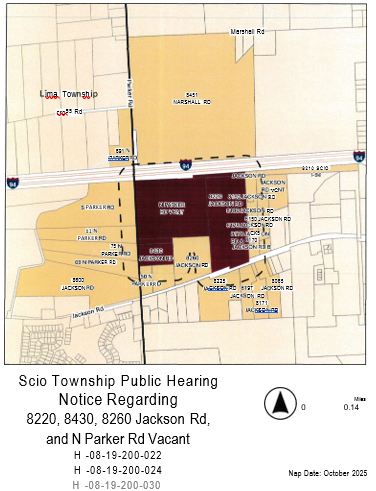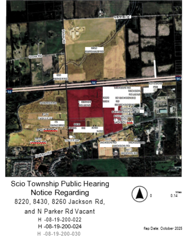 NOTICE IS HEREBY GIVEN that a public meeting of the Scio Township Planning Commission will be held at the Scio Township Hall, 827 N. Zeeb Road, Ann Arbor, Michigan, on MONDAY, December 8, 2025, at 7:00 PM. During this meeting the Planning Coininission will hold a public hearing on the following matters:
