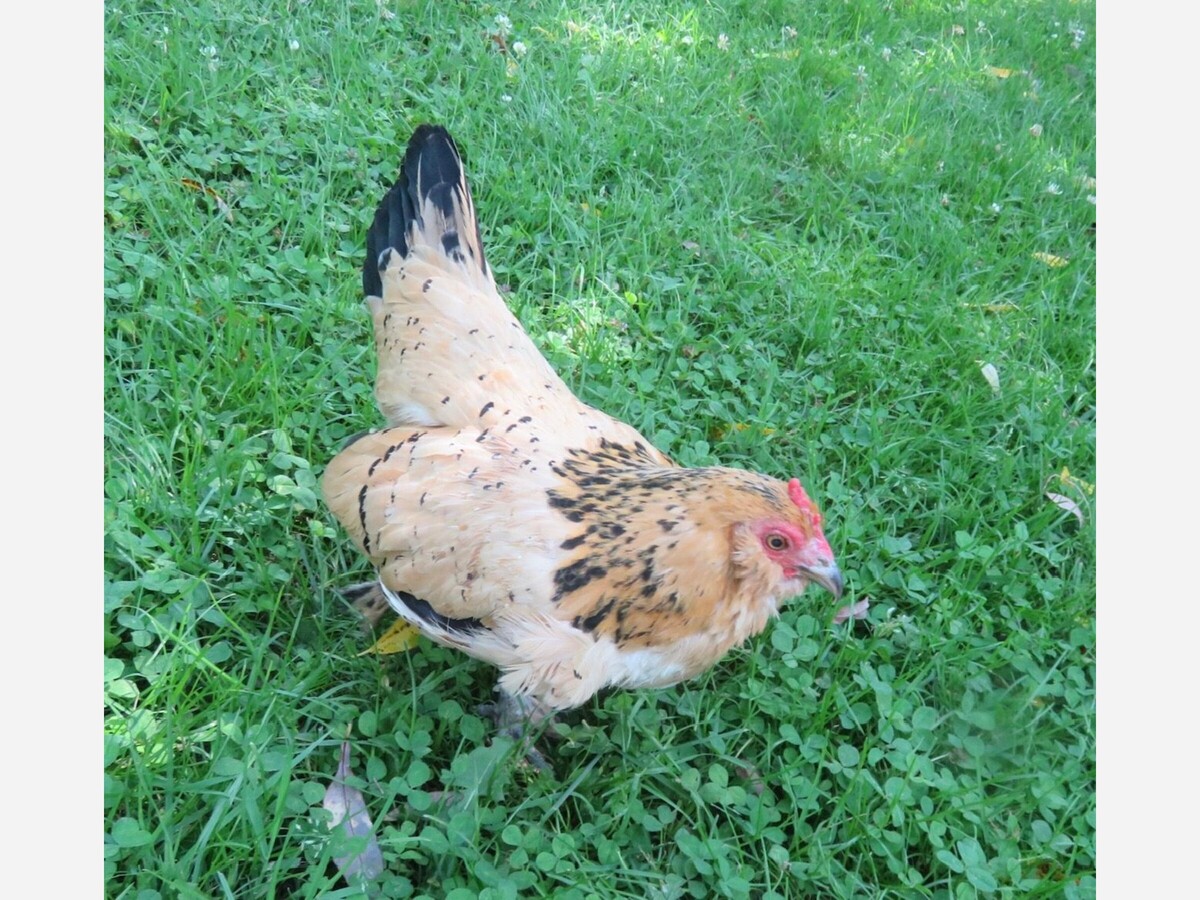 By the early 2000s, word got around about Marsi’s new interest, and calls began pouring in from people needing to re-home their birds. One rescue included a beautiful little Nankin hen, Nanette. Nankins are a true bantam breed. Bantams are a small breed, the male of which is noted for its feisty attitude.