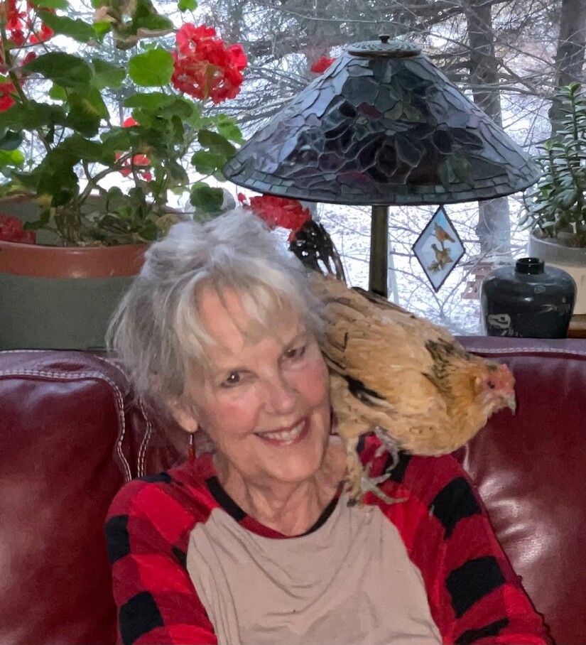 After two decades, Peanut now spends winters indoors. “Although doddering, she’s up and around and eats like she’s going to the chair,” says Marsi. “Once again this winter, Peanut is in our living room, watching TV and looking out the window, clucking over treats and sharing her life with our 15-year-old daughter, Millie.”