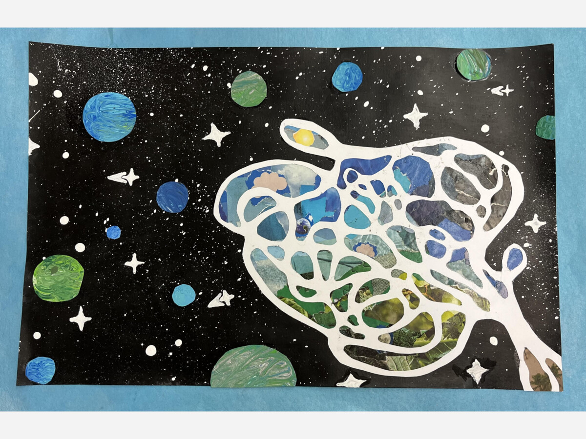 This piece is by Neve Rodriguez, 9th Grade, and it will also be at the art show. photo courtesy of CHSKaitlin Kubicki, tenth grade, said her work is a mixed media collage piece inspired by her interest in space.