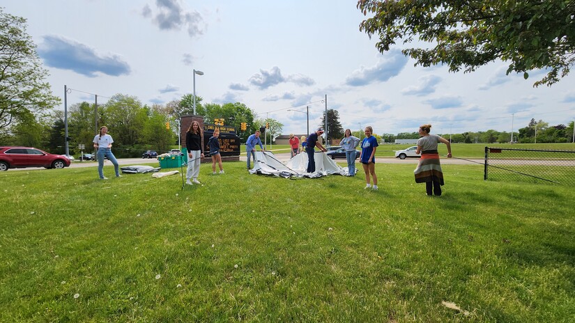 CHS Interact Club members set up the Shelter Box outside the high school. photo courtesy of Anne Nauts