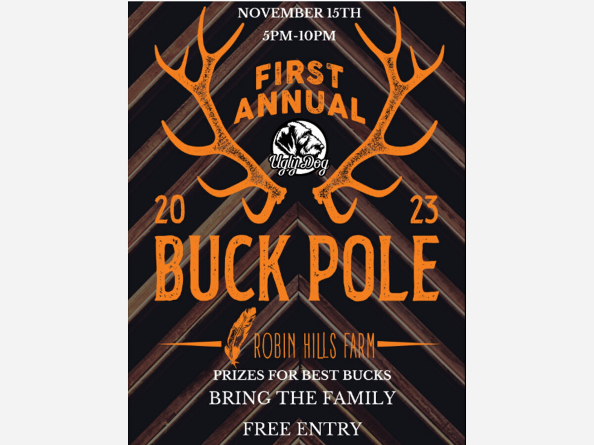 Organized by Ugly Dog Distillery, this free event is scheduled for 5 p.m. to 10 p.m. that Wednesday, at Robin Hills Farm at 20390 M-52, just outside of downtown Chelsea. The Buck Pole Social on the Farm is as a family-friendly event that has free entry for all ages to go along with music, Ugly Dog craft cocktails, beer, wine and seltzers, chili for sale from The Nest at Robin Hills as well as Coffee / Hot Chocolate for sale, and merchandise available for purchase, including a first annual Buck Pole shirt available in camouflage.