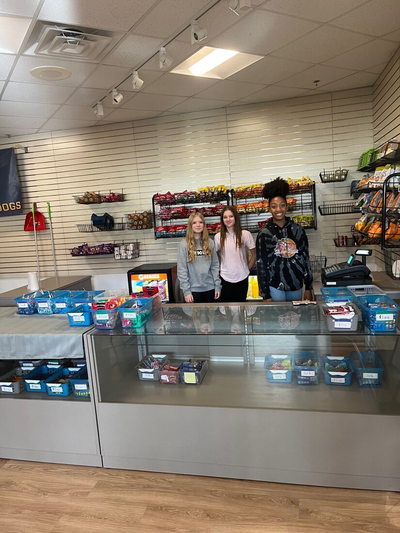 He said “The Champions Corner was re-imagined in 2021 and is aligned with the Marketing classes taught by Mr. Scheese. Improvements to the space include: 16 student seats, 4 tables, 2 display cases and storage units purchased in 2022 which provide a place for students to eat lunch, hang out and buy a snack or two. The store offers students low cost ($2 and under) healthy snacks/drinks during lunches (Monday through Friday) and other snacks/drinks during lunches and Bulldog Block (Tuesday and Thursdays). New additions coming to the store in the winter of 2023 include: laminate wood flooring which will replace the carpet, two 65 inch TV’s which will broadcast student events and a 55 inch TV will be used to display prices.”