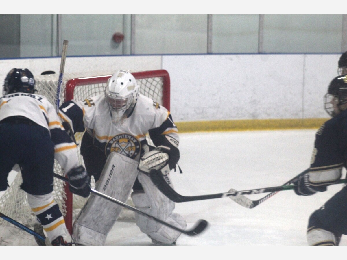 Washtenaw kept battling and cut the lead 2-1 early in the third with a shorthanded goal by Grant with an assist to Henriksen, but South would score twice more to make the final 4-1.