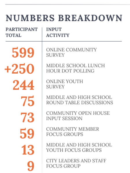 A key aspect of their approach has included various community segments. Ziolkowski told the council that MSPA received 599 responses from an online community survey, 244 youth surveys, and 250 middle schoolers were polled. Additionally, the alliance conducted focus groups with various stakeholders, including the senior community, Parks & Recreation, and accessibility advocates.