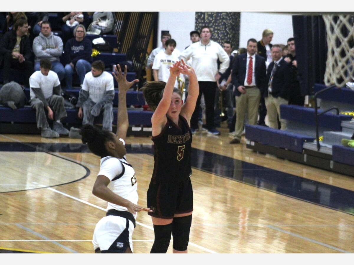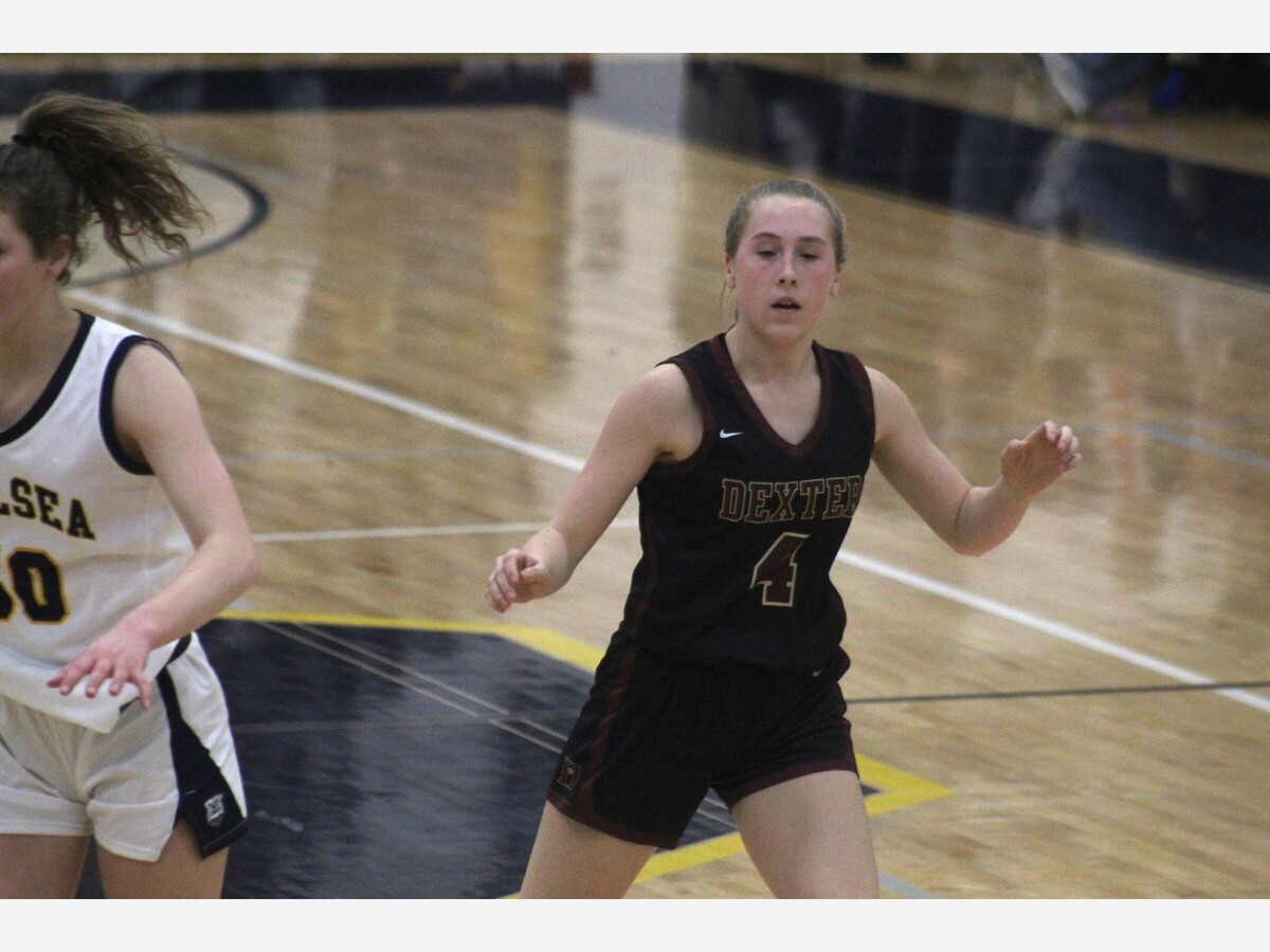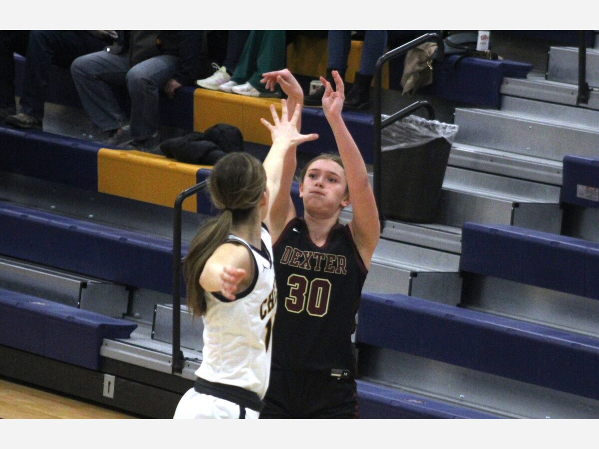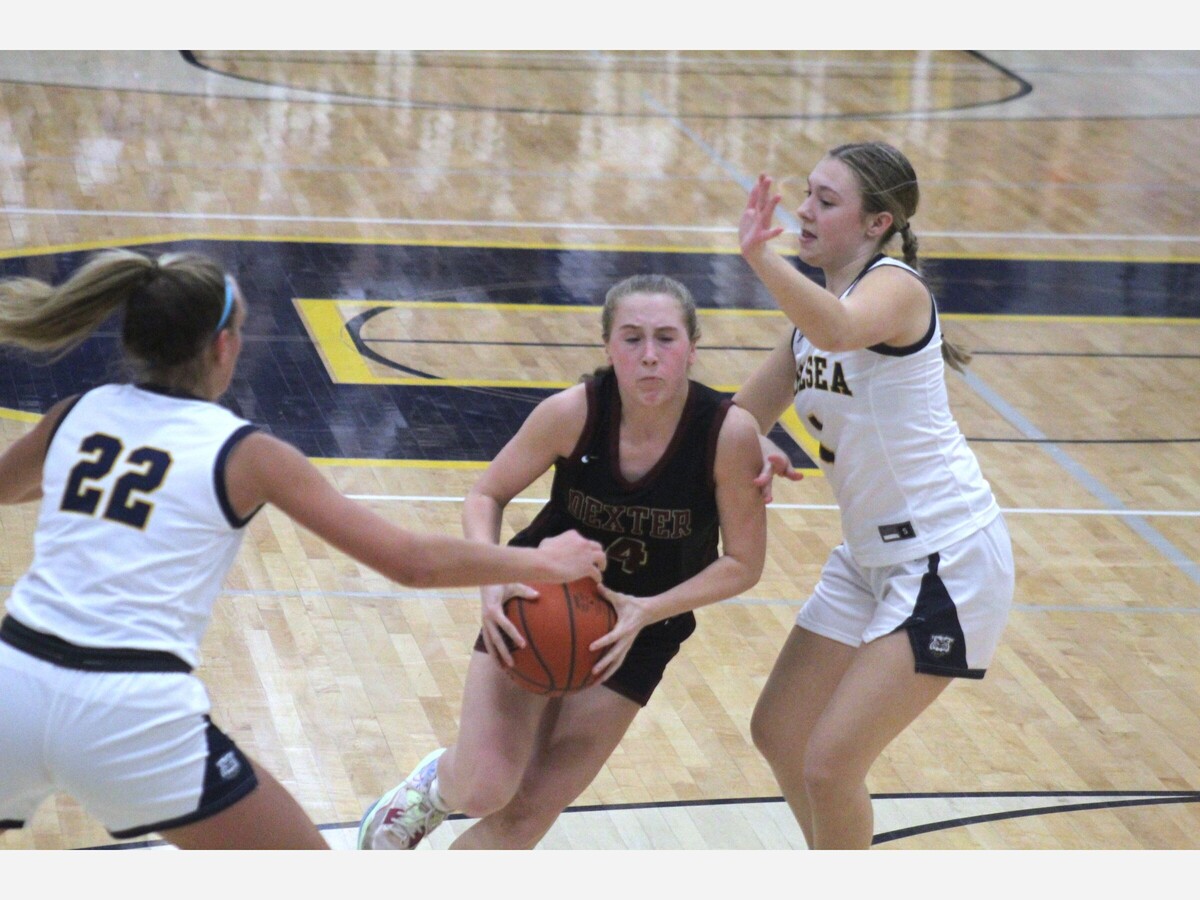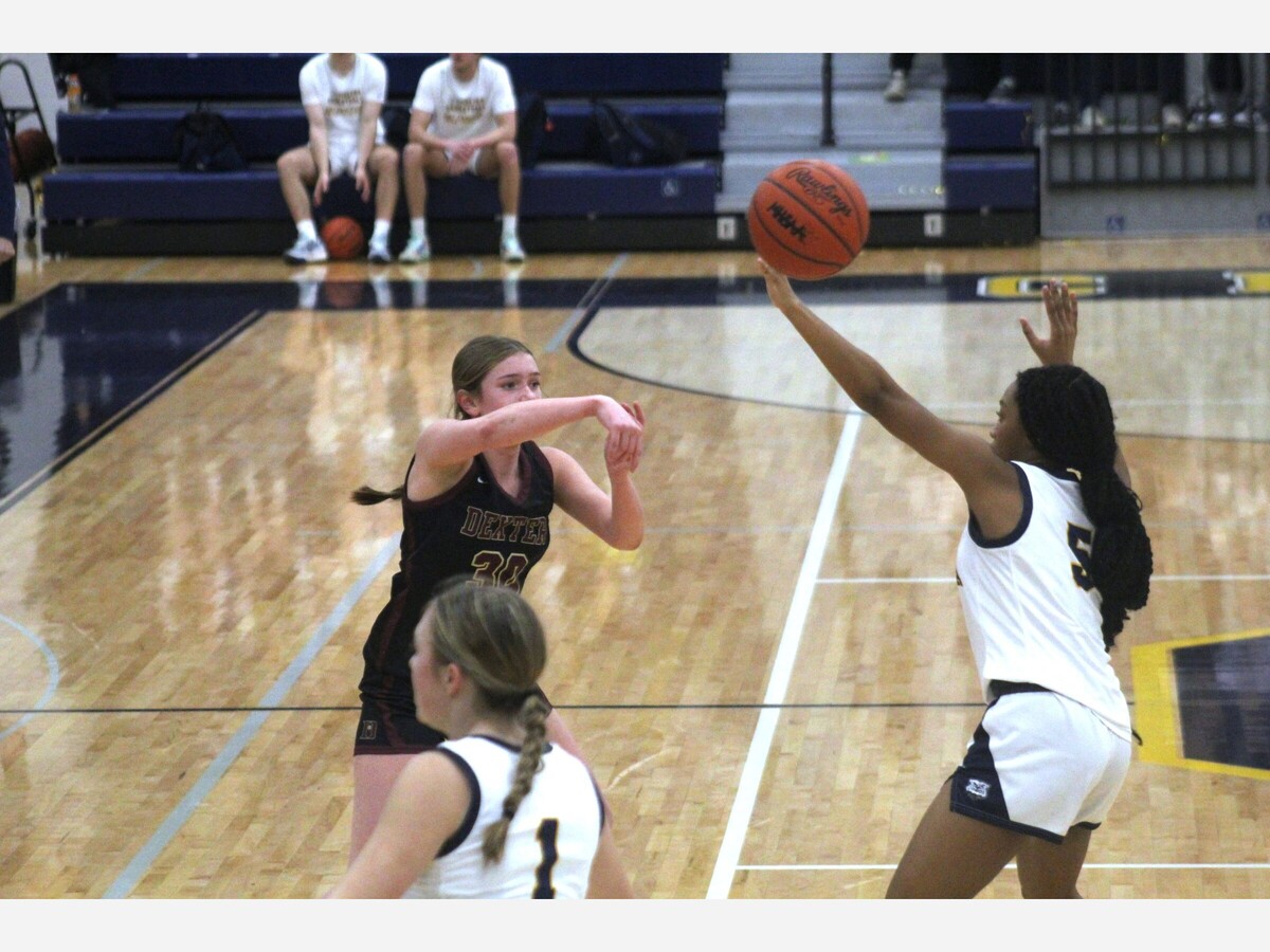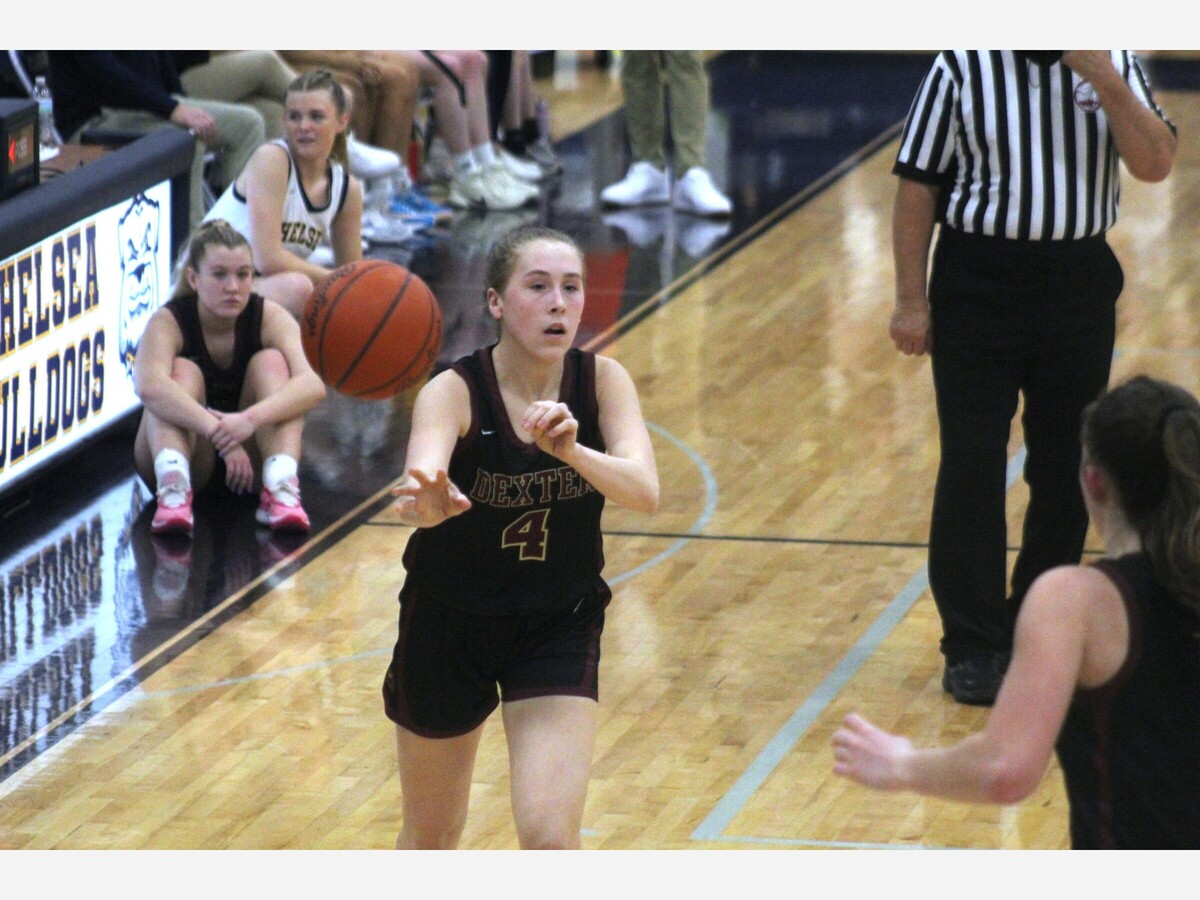 Alena Blumberg led Dexter with 15 points. Photo by Mike WilliamsonLay finished with 16 points for the Bulldogs. McKale hit three triples for nine points, while Braiden Scheffler added two and Aleeah Wells one.