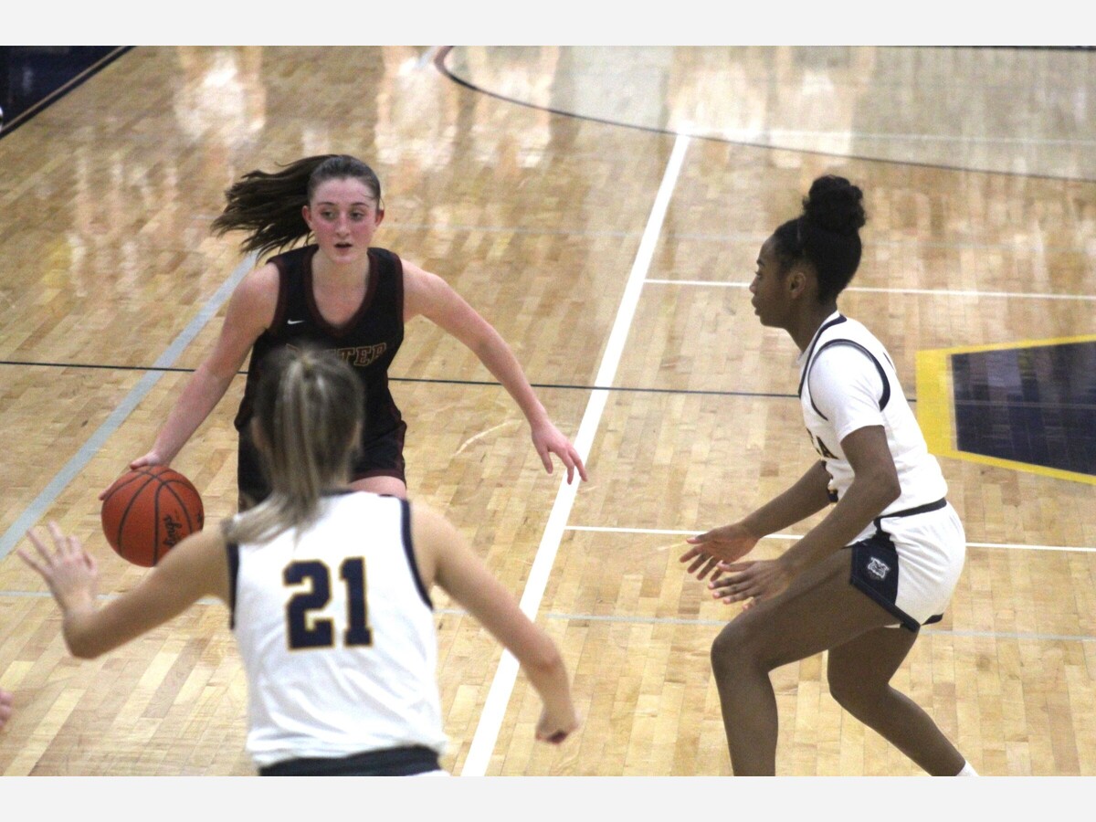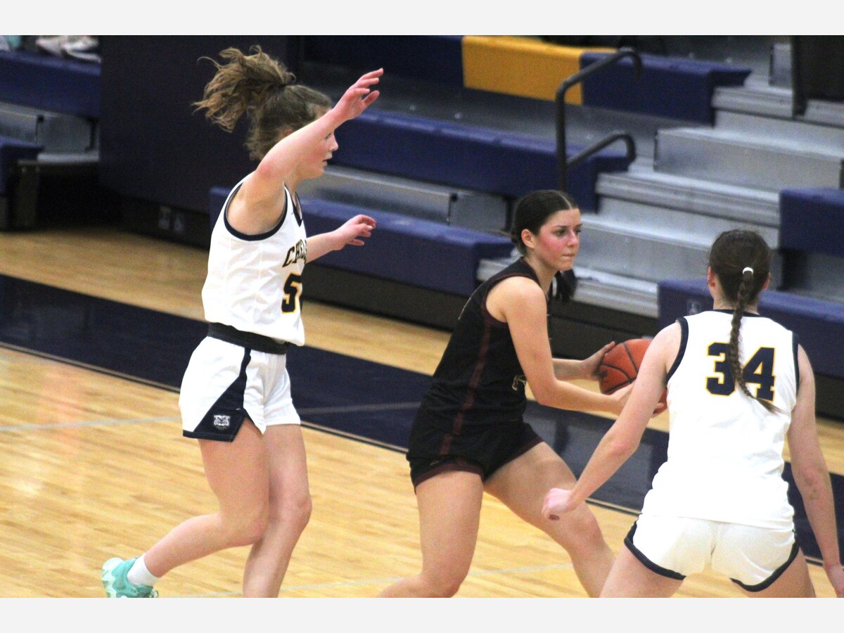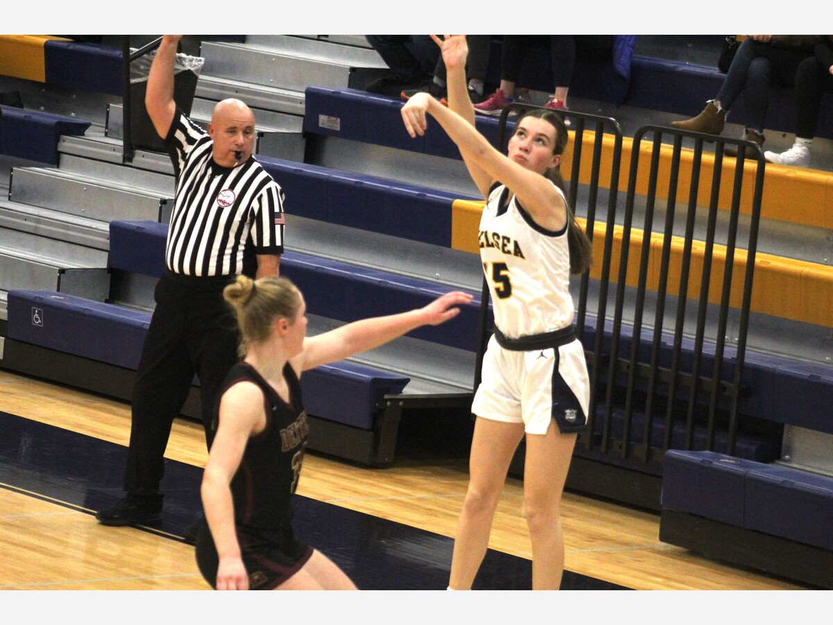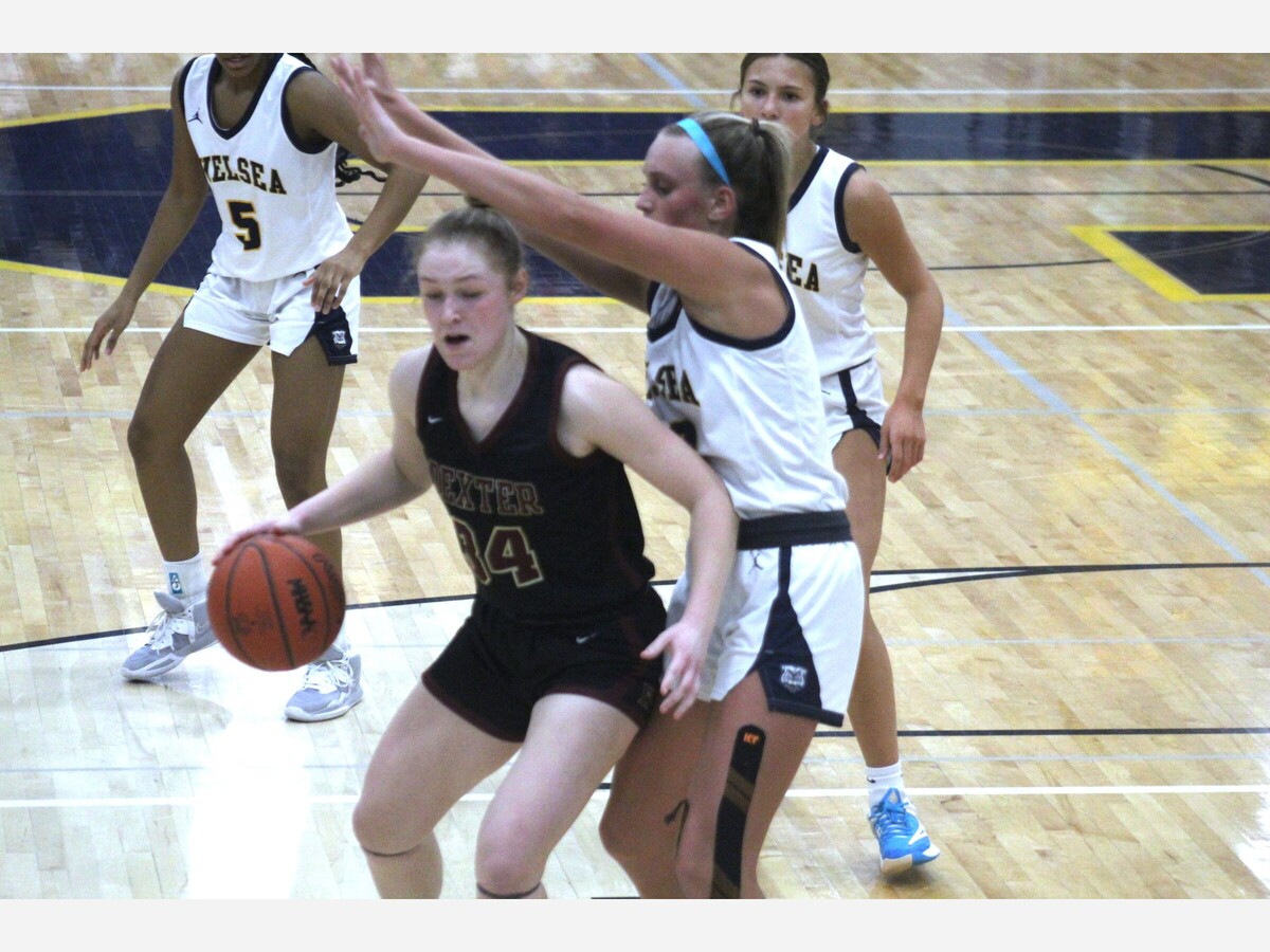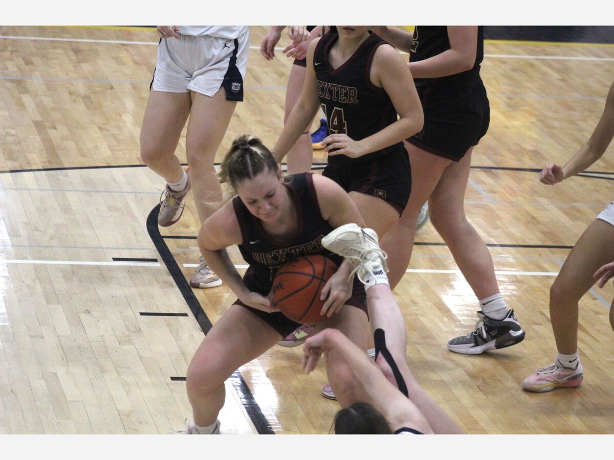 Alena Blumberg led Dexter with 15 points. Photo by Mike WilliamsonLay finished with 16 points for the Bulldogs. McKale hit three triples for nine points, while Braiden Scheffler added two and Aleeah Wells one.