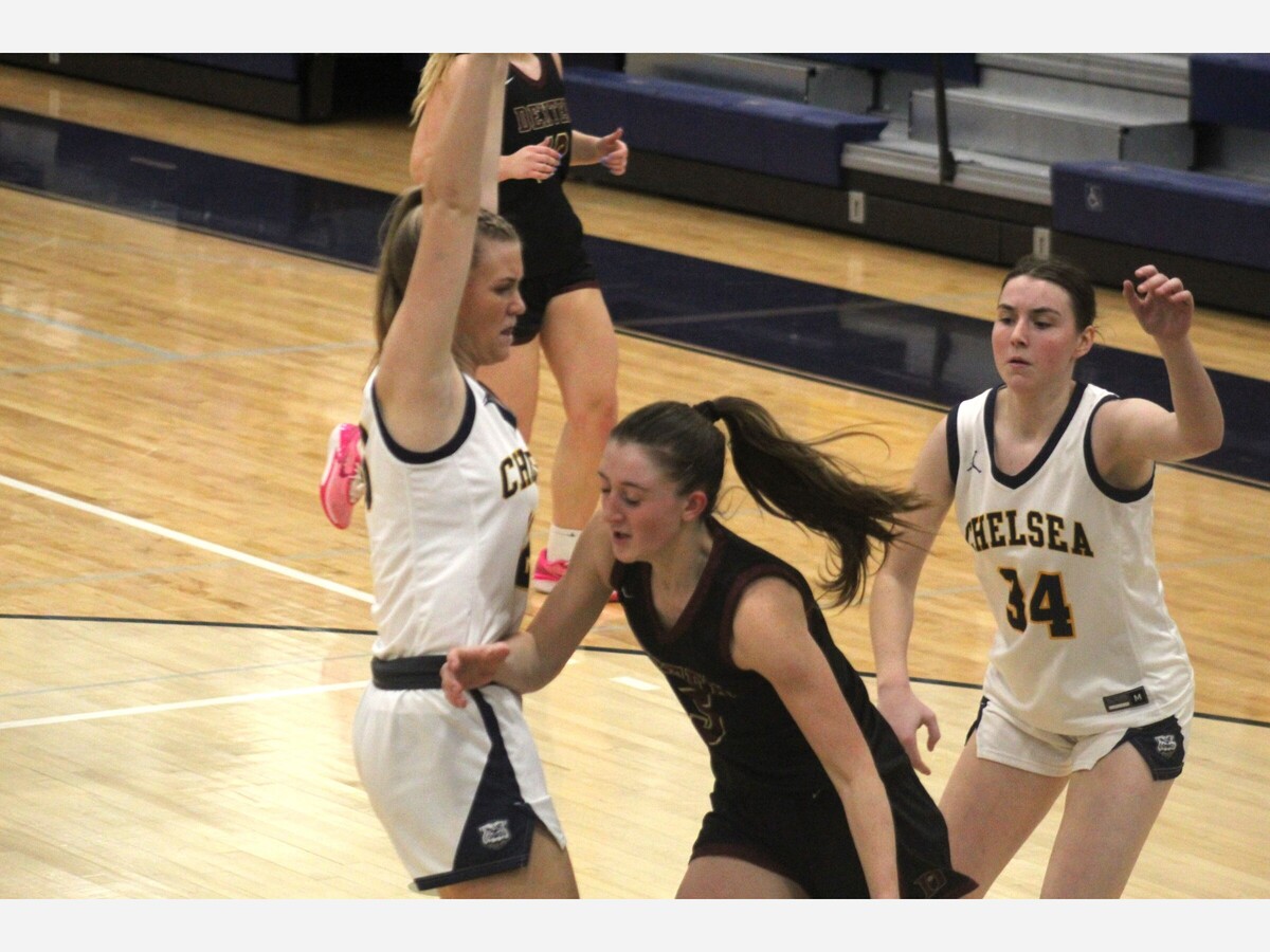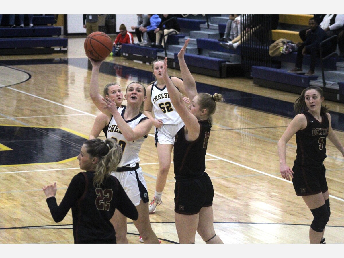 The Chelsea girls’ basketball team used a quick start to avenge an early season loss to rival Dexter Friday night rolling past the Dreadnaughts 58-33.