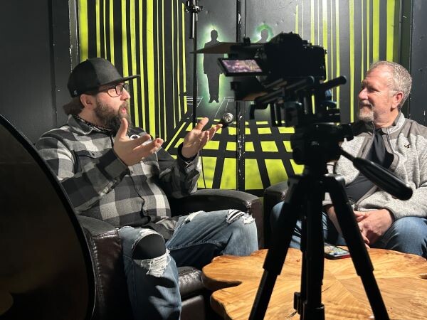 Chelsea entrepreneur Jason Povlich (L) explains his intuitive and logical business approach to Sun Times News Editor Doug Marrin in the Rumpus Room. Photo by Chuck Colby.Povlich explains, “I never wanted to do business for just money. It was first and foremost because I love doing business. Second is I love creating jobs and opportunity.” This ethos is evident in the continued expansion of his family of businesses, including the opening of Clocktower Comics and The Grateful Crow, a fusion burger and sushi bar that successfully began operations during the economically trying COVID-19 pandemic.