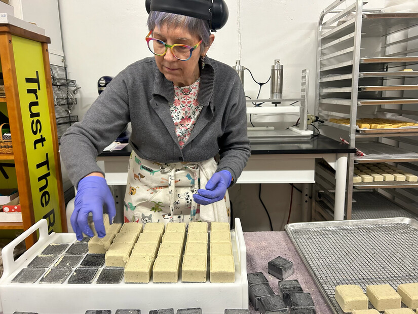 Beth Scarbrough at work inside FarmSudz. photo by Chuck ColbyFarmSudz has two locations: Chelsea and Jackson.