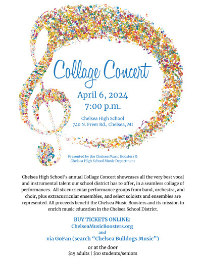 Chelsea High School will host its celebrated annual Collage Concert on April 6, 2024, at 7:00 p.m. The event will be held at the newly renovated Ron Mead Auditorium.
