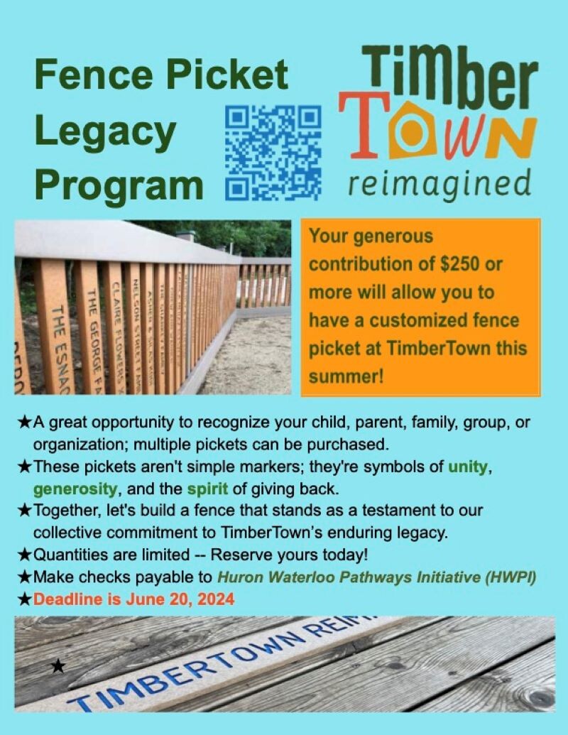 “Each picket represents a story, a memory, and a commitment to preserving the beauty and enhancing the accessibility and essence of our community space,” said Jeff Hardcastle, co-chair of the TimberTown Reimagined project.
