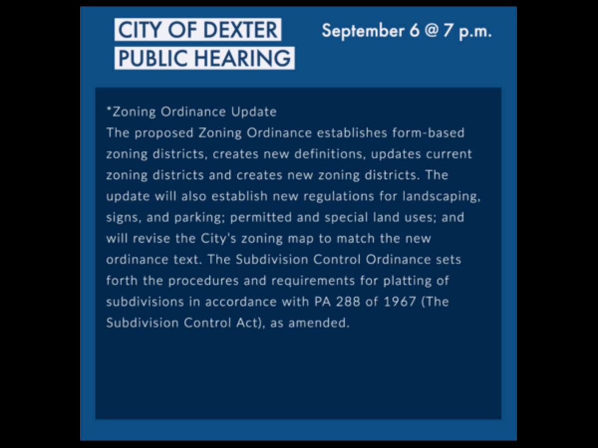 Please note that City staff and planning consultant, CWA will be available to meet one-on-one with residents, property owners, and business owners to answer questions regarding changes to the Zoning and Subdivision Ordinances, on Tuesday, September 6th from 6 – 7 pm, before the Planning Commission meeting. This session will take place at St. Andrew's Fellowship Hall (7610 Ann Arbor Street). Walk-ins are welcome, but appointments may be scheduled by calling City offices at 734-426-8303, during normal business hours.
