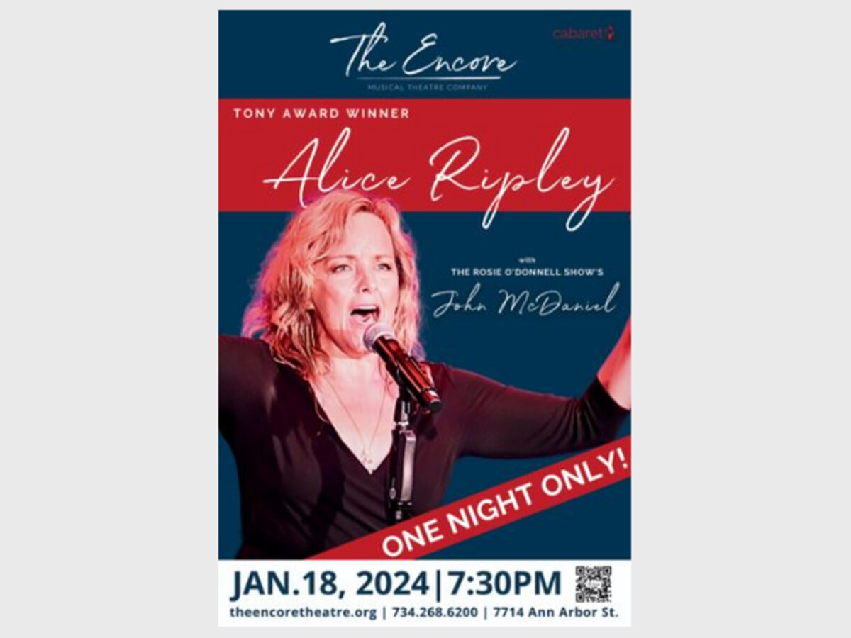 Tickets on sale now! https://theencoretheatre.org/event/alice-ripley-john-mcdaniel/ or call 734-268-6200.