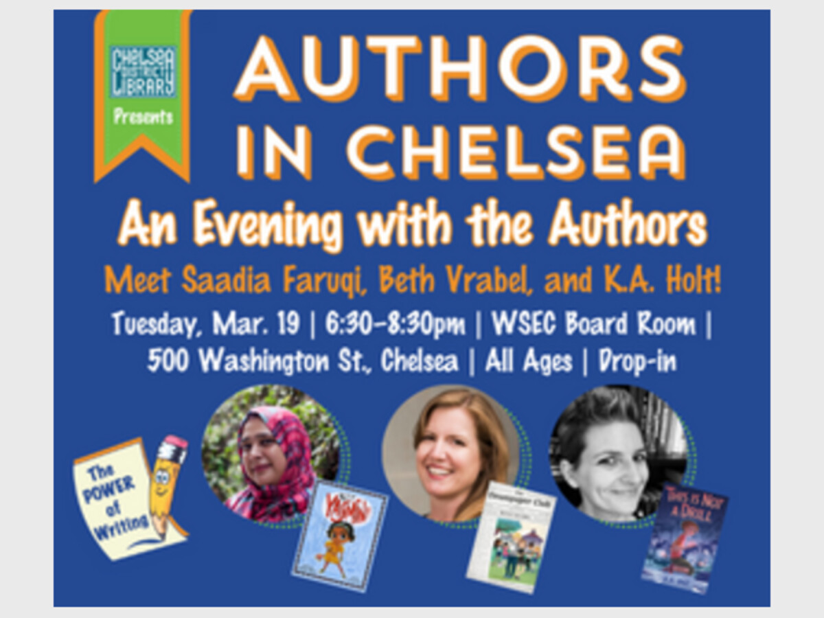 Meet our 2024 Authors in Chelsea panel as they chat about writing, finding inspiration and new ideas, and so much more, followed by a book signing session. This year's panel includes Saadia Faruqi, Beth Vrabel, and K.A. Holt. Come ready with questions! Books will be available to purchase courtesy of Serendipity Books– arrive early to grab copies of your favorites.