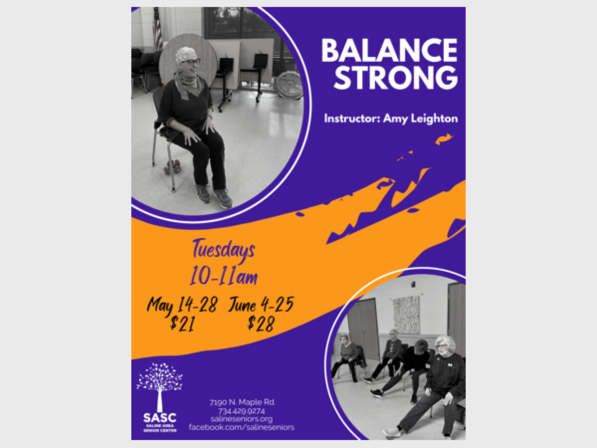 In this class, our main focus will be on building up your core strength and helping you feel more stable on your feet. We'll work on improving your balance through a combination of strength exercises and flexibility training that specifically target the core. It is worth noting that this class will be slightly more challenging than Balance Strong Beginning. Register at the front desk or online: https://sasc.recdesk.com/Community/Program/Detail?programId=2385