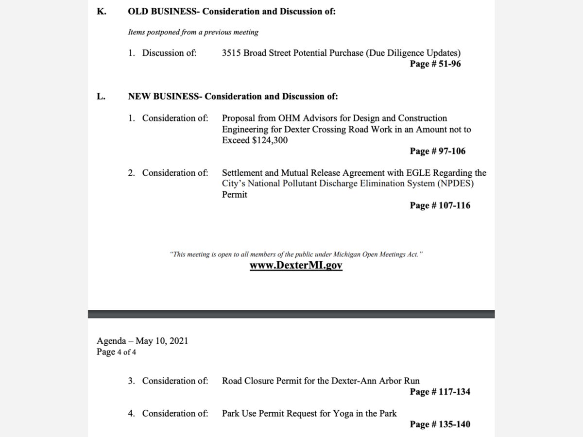 Meeting Agenda: https://www.dextermi.gov/City_Council/2021/Agendas/2021-05-10-CC-A.pdf