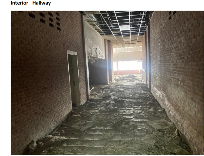 “The building is in complete disrepair as it has been gutted by scrappers over the years (One person perished while attempting to illegally scrap materials). Though the building is structurally sound; consisting of brick/cement block walls, and even a cement roof in some areas, as well as a reinforced “vault-like” satellite building, it is in essence a shell - requiring complete interior renovation (Refer to the pics in the addendum). Other than perhaps some cosmetic updates, the owner has claimed that the exterior footprint and overall look will remain unchanged. The owner claims that the estimated cost to renovate the building is $15mm.”