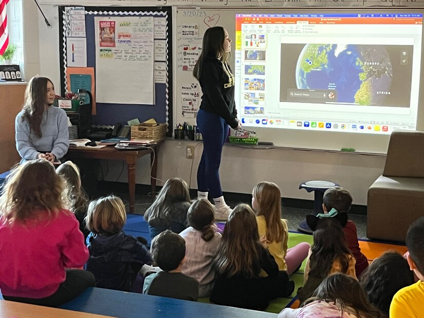DHS exchange student Lisa Feltracco of Italy talks with Beacon second-graders while fellow exchange student Marta Primo Fos of Spain at left looks on. photo by Lonnie HuhmanSTN asked Kline about the reaction and feedback she heard from her students.