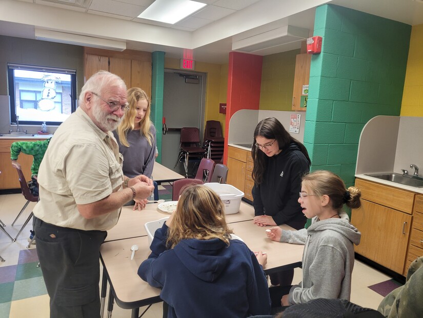Randy Baker from Naturalist Endeavors teaches Creekside students about some local water life. photo courtesy of Creekside Intermediate SchoolBaker called these "Magic ponds - just add water and instant life!"