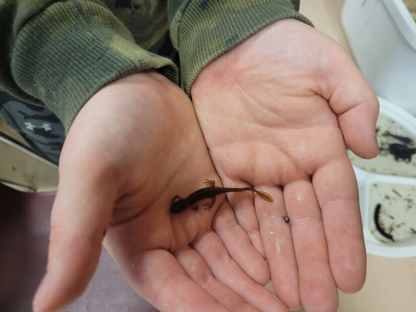 Getting hands-on while learning about some local aquatic life, students at Creekside Intermediate School got a first-hand look into life of Spring vernal pools.