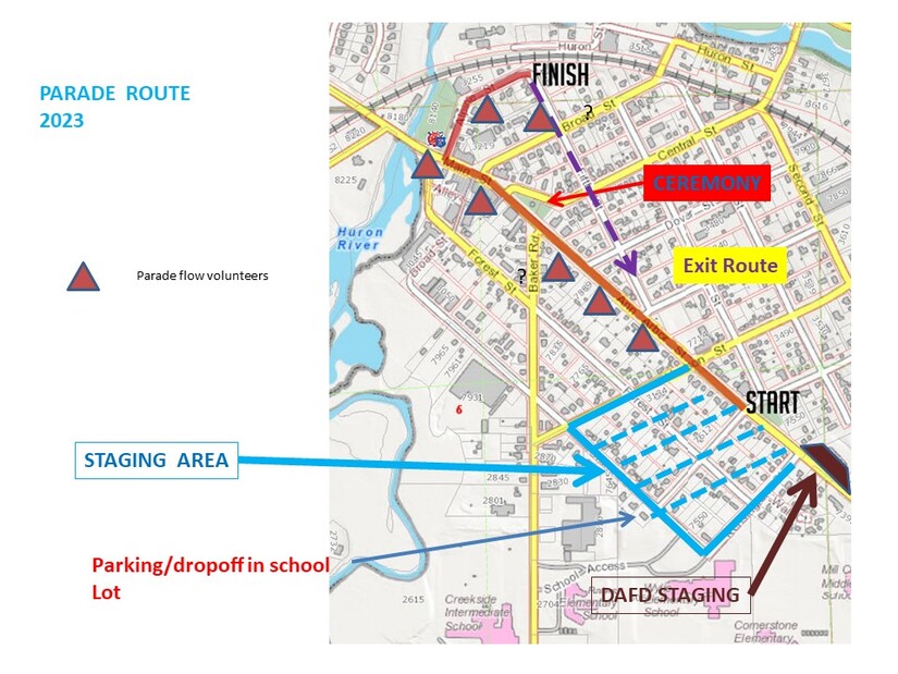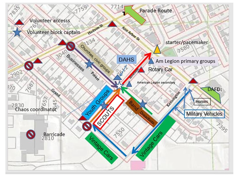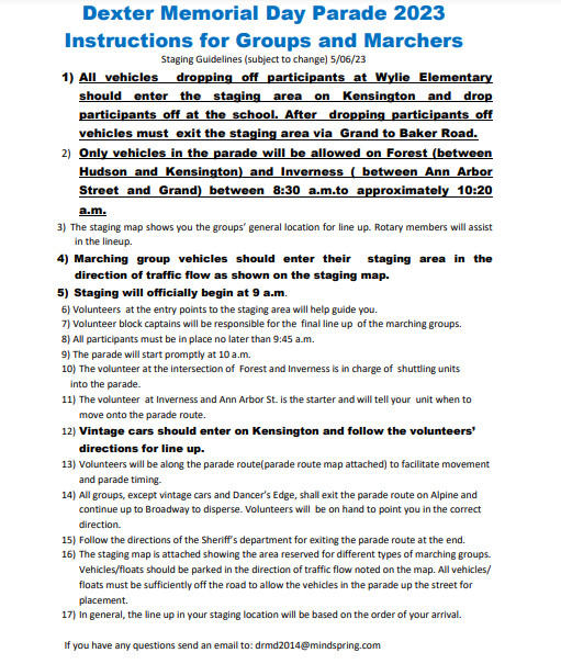Dexter Memorial Day Parade staging plan. image courtesy of the Rotary Club of DexterTo learn more about the parade, go to http://www.dextermemorialdayparade.com/