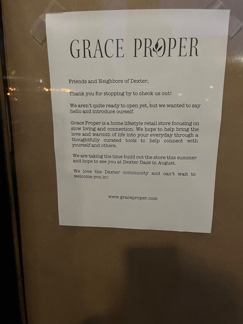 It says they are taking the time out this summer to build out the store and hope to see the community at Dexter Daze in August.