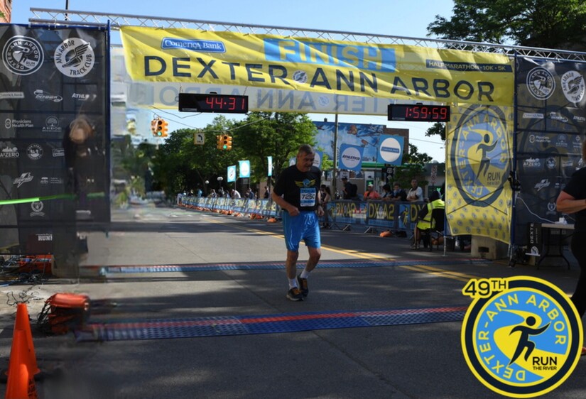 Erik Pedersen crossing the finish line. photo courtesy of the Pedersen familyIn giving some background as to the origins of wanting to compete in this event, the Pedersen family has always prioritized health and fitness, and it’s always been a part of the family lifestyle. Erik was a professor in the teacher preparation program of the Physical Education Department at Eastern Michigan University while Brett and his three siblings grew up hearing about the benefits and enjoyment of exercise. It wasn’t long before they were participating along with their dad in road races. Brett and his wife Shannon have now started to instill that same enjoyment with their children.