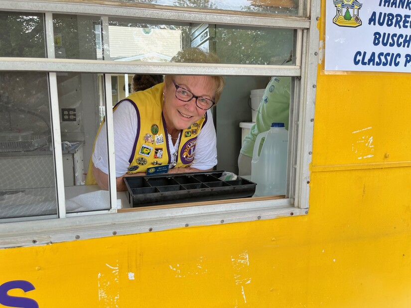 New Dexter Lions Club President Becky Walters serving food at Dexter Daze. photo by Lonnie HuhmanThe club is comprised of 19 women, 47 men and 12 couples, for a total of 66 members.