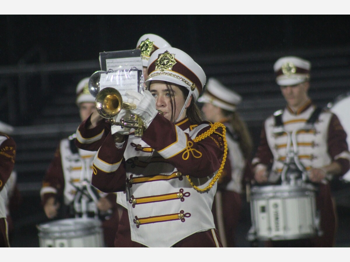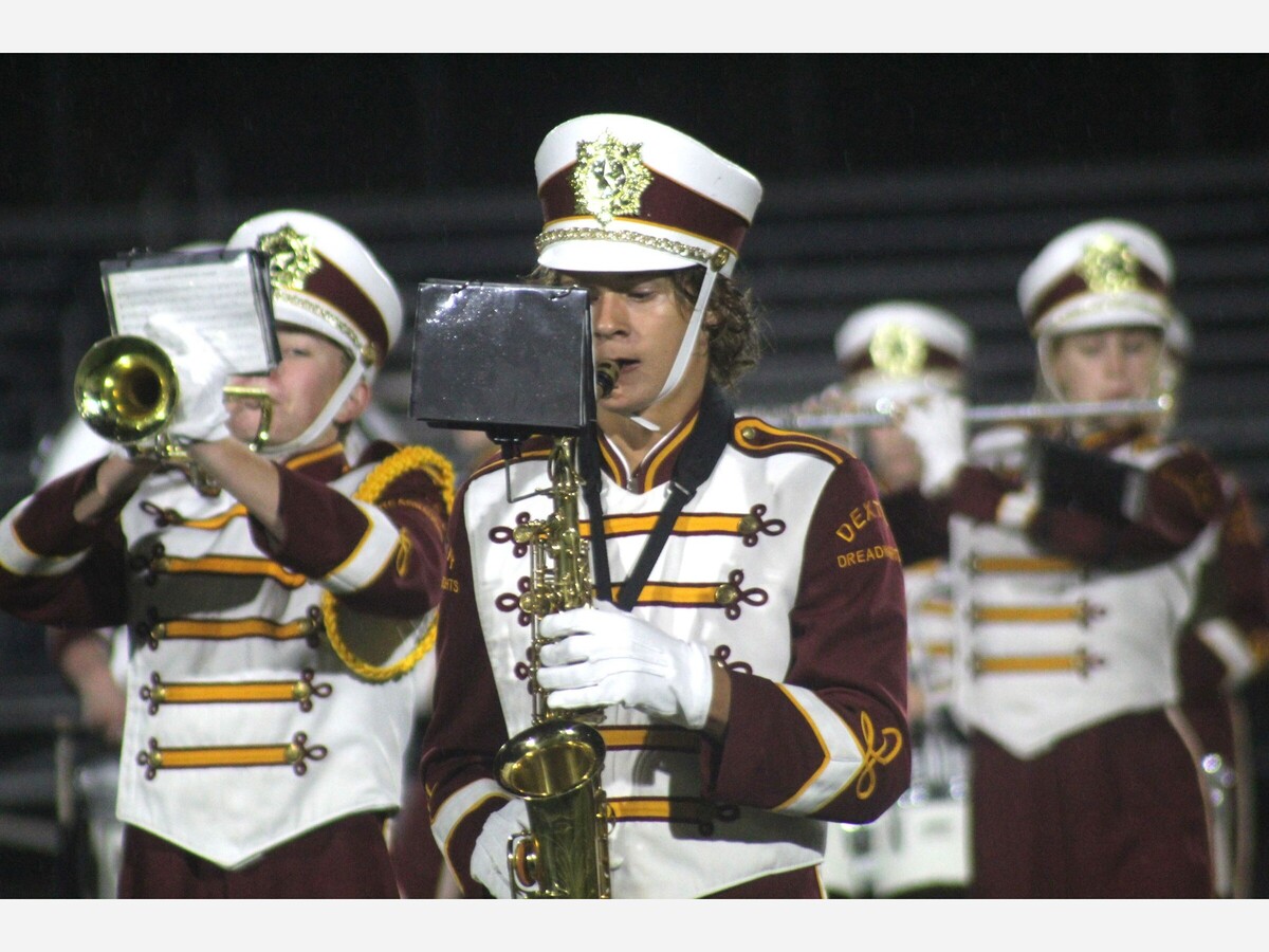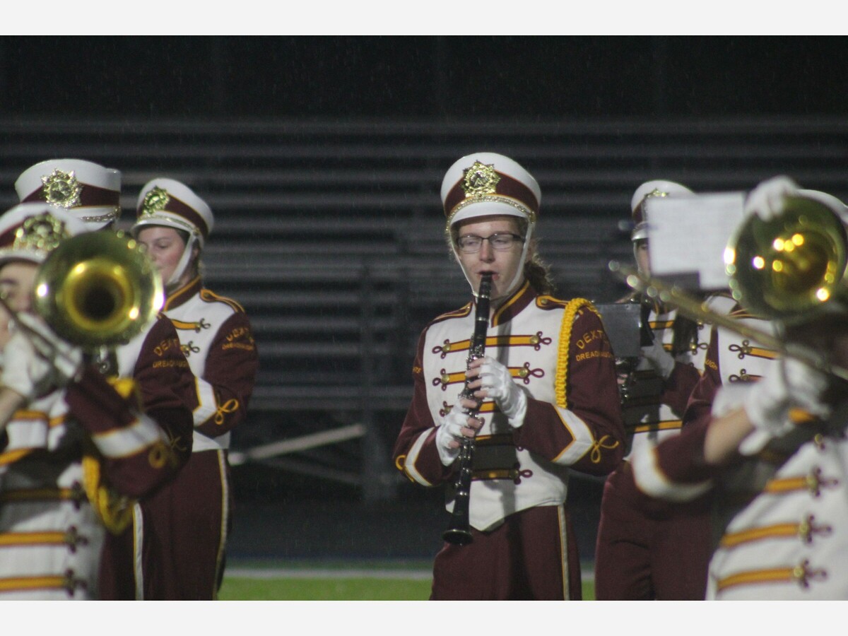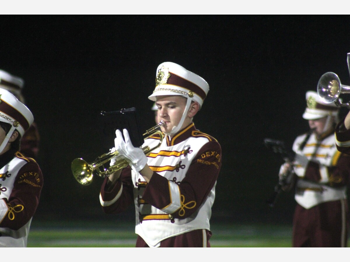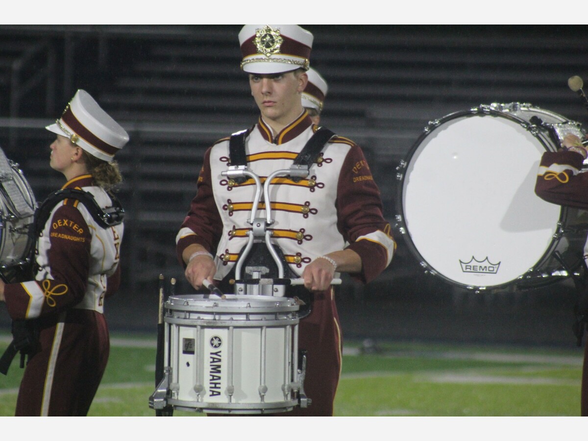 The Dexter Marching Band didn't let some rain stop them from an amazing performance at the Chelsea Marching Band. From The Beatles to The Back Street Boys with a little stop in Africa, the Dreadnaught Marching Band traveled through the decades with its performance in the rain.
