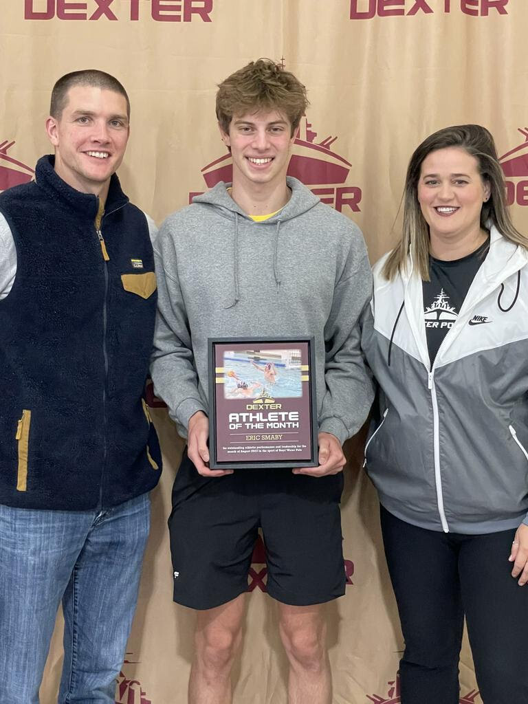 photo courtesy of the Dexter Athletic DepartmentAnd for Smaby, it said he “was selected as Athlete of the Month based not only on his game performance, but also on his qualities as a teammate and individual. According to his coach, Eric exhibits remarkable selflessness, as evidenced by his willingness to step up and play goalie when the team was in dire need, despite having no prior experience in the position. Eric was willing to set aside the skills he had honed over the years as a field player to fulfill a role that his team required. Since that time, Eric has approached practice with a mindset and demeanor that reflect his readiness to learn and his commitment to improving. Based on his statistics, Eric has made significant progress as a goalie: 7 Games, 98 Saves, 8 Steals, 6 Assists.”