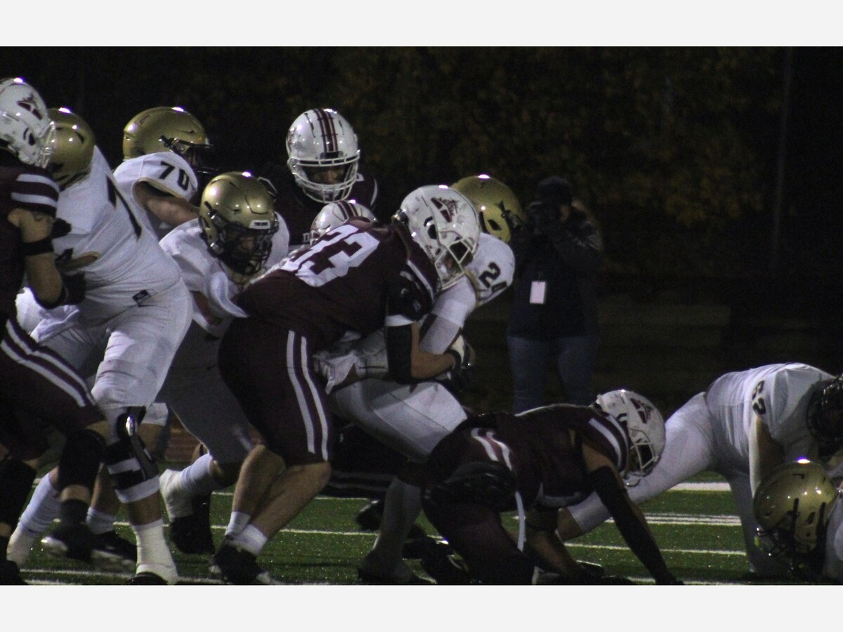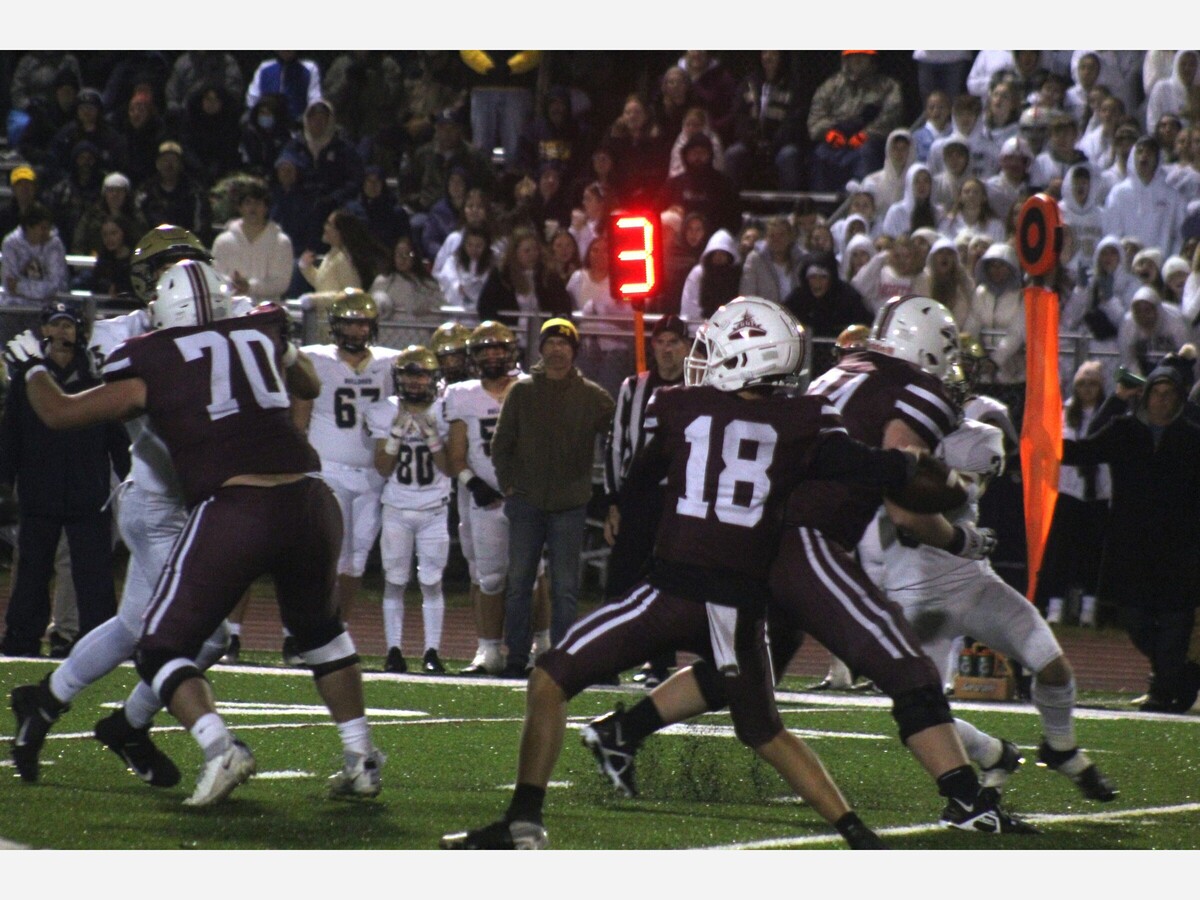 Chelsea would eat up another seven minutes off the clock with its second drive and on fourth and goal at the two, coach Josh Lucas chose to kick a field goal and Myles Bieber put it through the uprights from 21 yards out to cut the lead to 14-10 with just over three minutes remaining in the half.