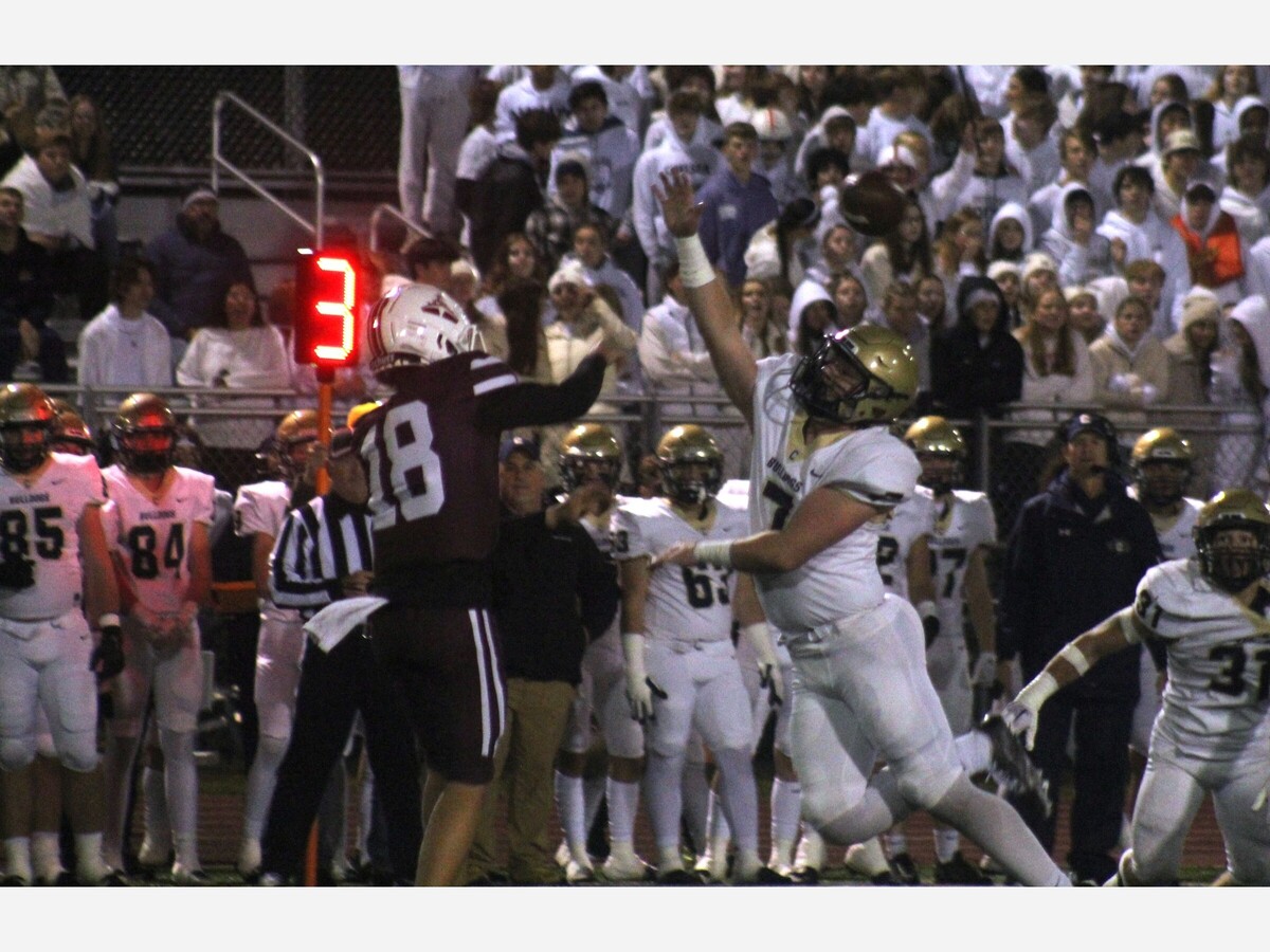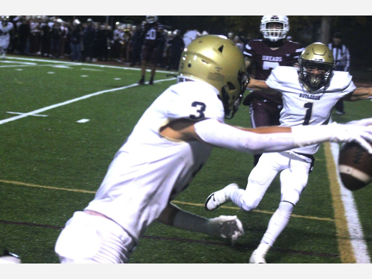Max Herter hauls in a 20-yard touchdown pass just before halftime for ChelseaChelsea got the ball to start the second half, but the Dexter defense forced them to punt for the first time in the game and Dexter took over. On the first play, Seth Anstead swatted a pass attempt into the air and the ball was picked off by Ethan Povlich to give the Bulldogs the ball at the Dexter 20.