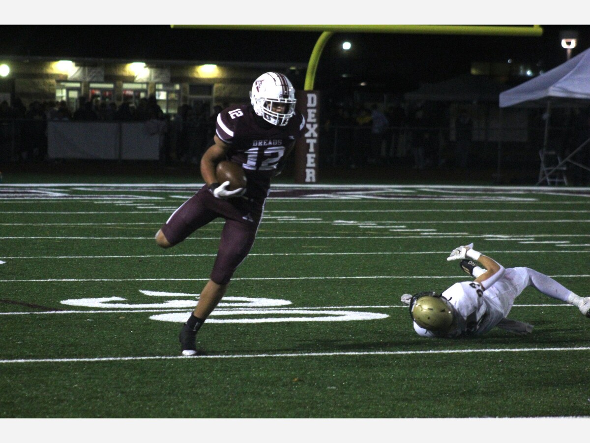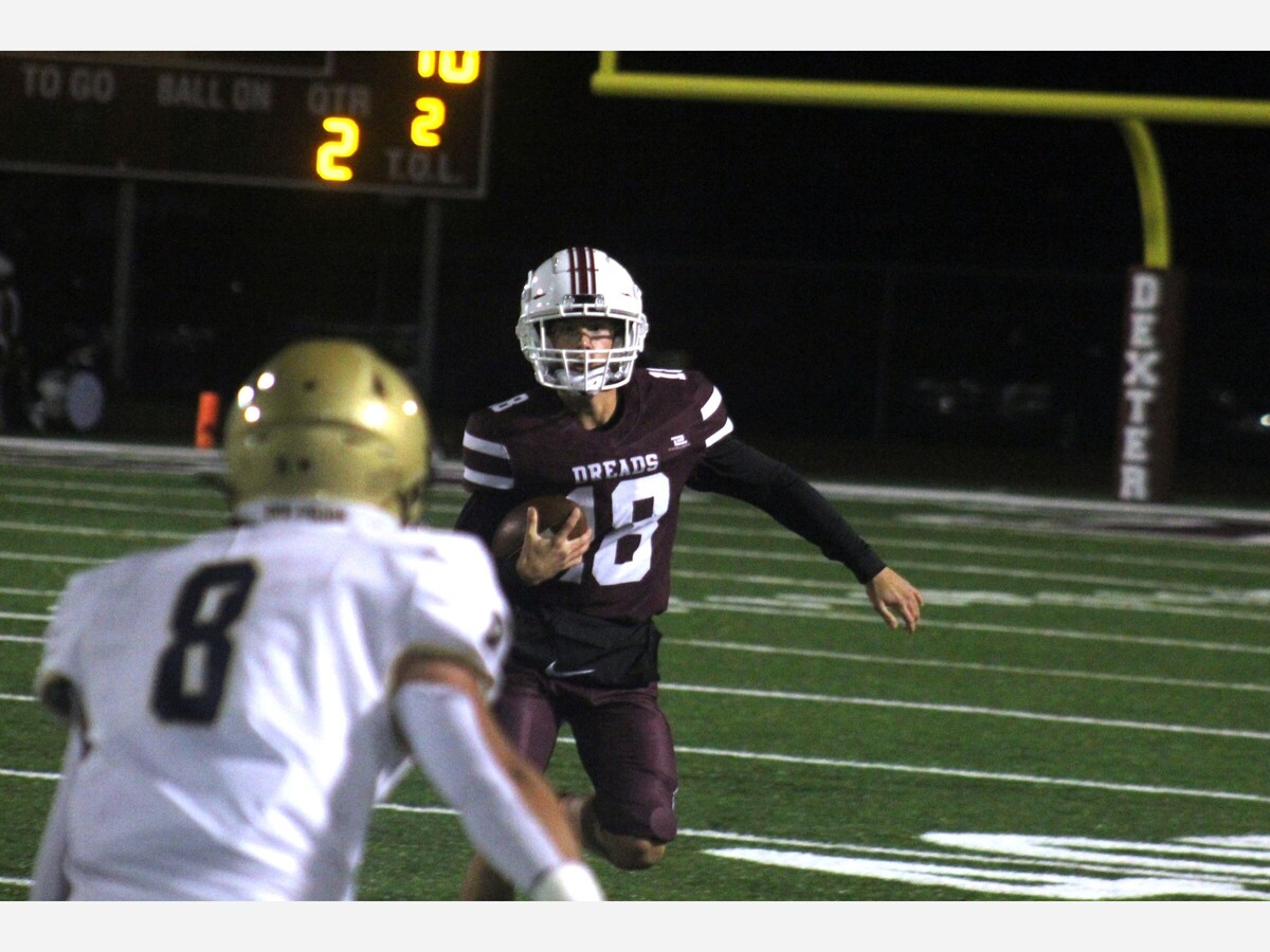 Quarterback Luke Anstead dropped back and broke free while eluding the Dexter rush and sprinted 34 yards into Dexter territory.