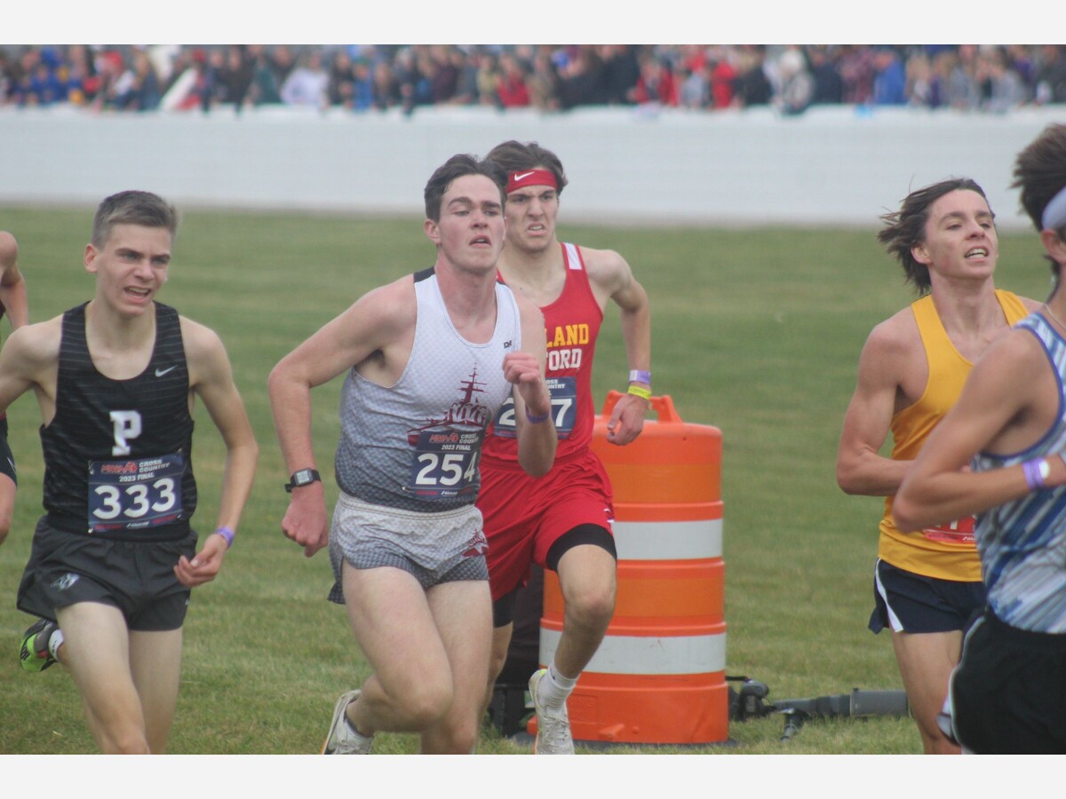 Sam Gibson knocked 25 seconds off of his personal best time at the D1 state finals. Photo by Mike WilliamsonElijah Smith set a new PR with a time of 16:41.1 and finished 148th and bettered his personal best time by 17 seconds.